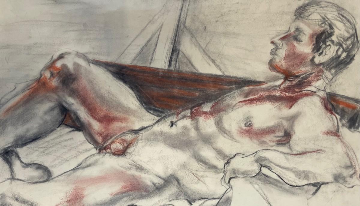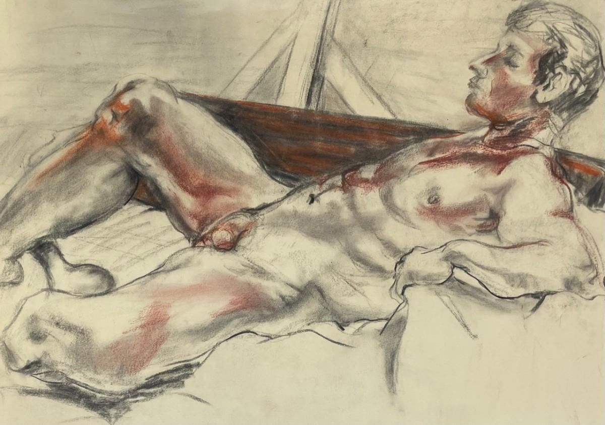Description: Male Erotic nude Charcoal sketch; Material: Paper; Measurement approximate: 31x21 in.