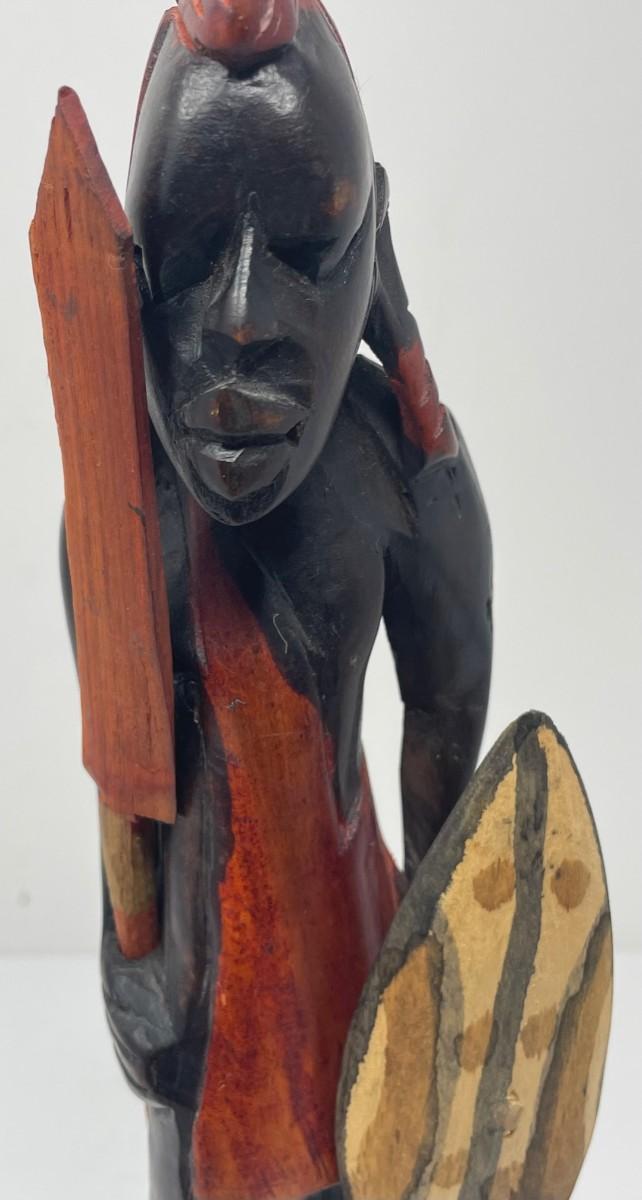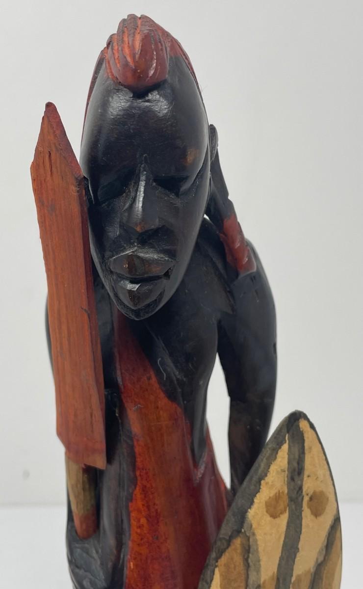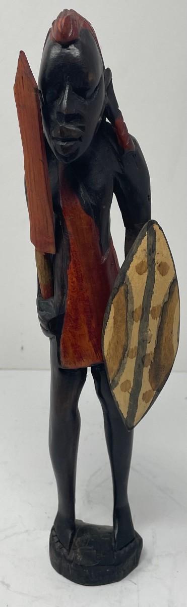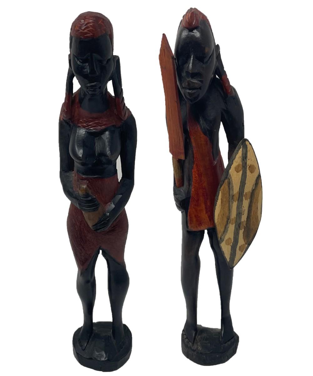 Description: Male statue (with spear and shield) and female statue (pair); Materials: Wood; Measurements: 12 1/2 x 3 1/2