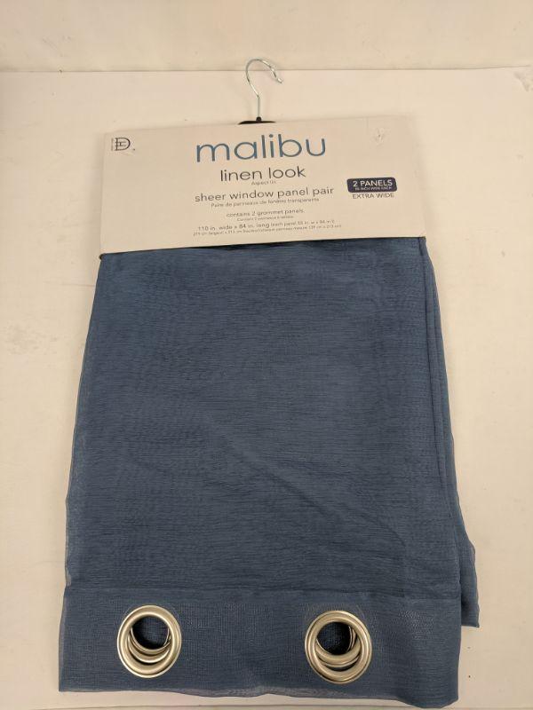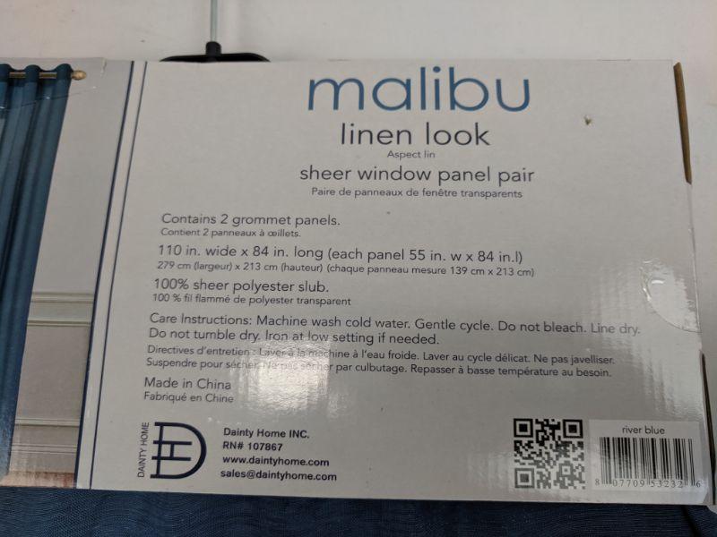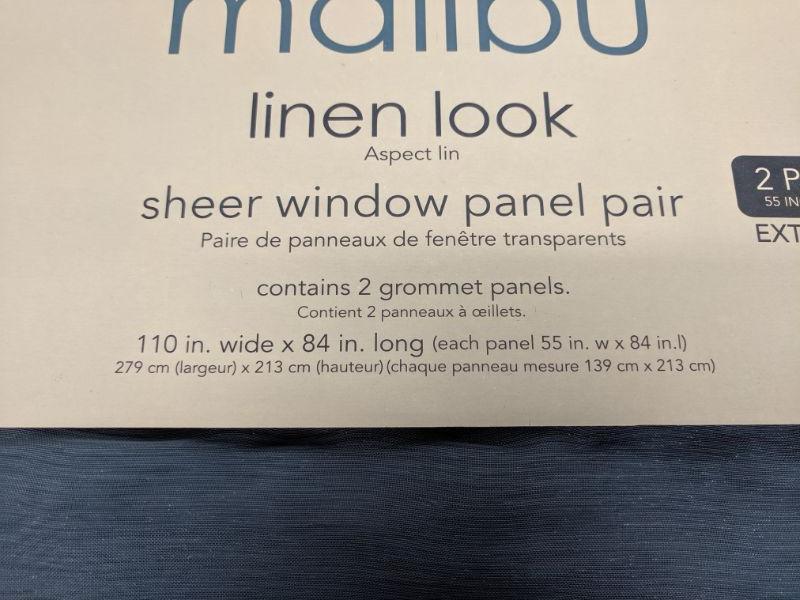Malibu Sheer Window Panel Pair, Linen Look, Blue, 55" x 84" - New