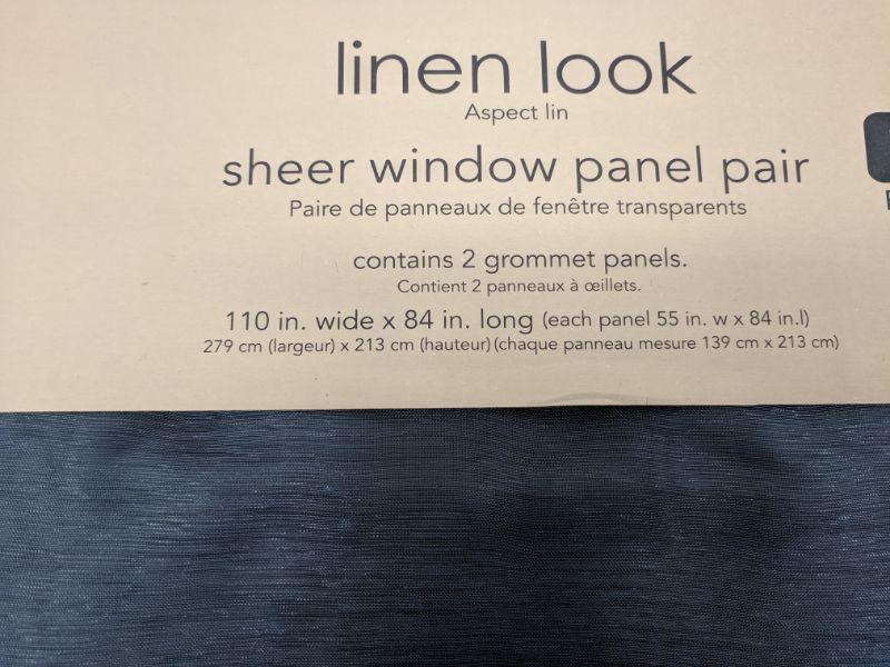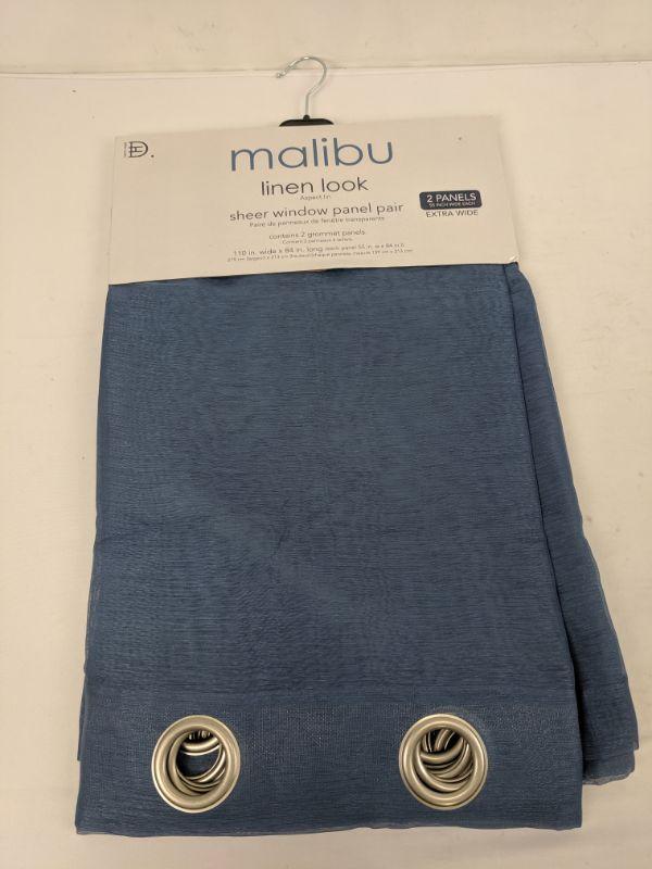 Malibu Sheer Window Panel Pair, Linen Look, 2 Panels, Blue, 110" x 84" - New