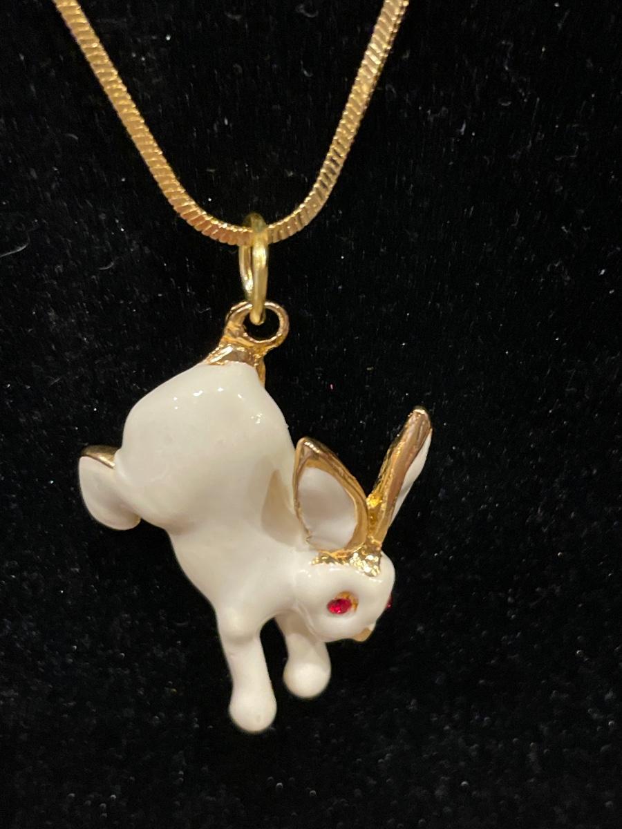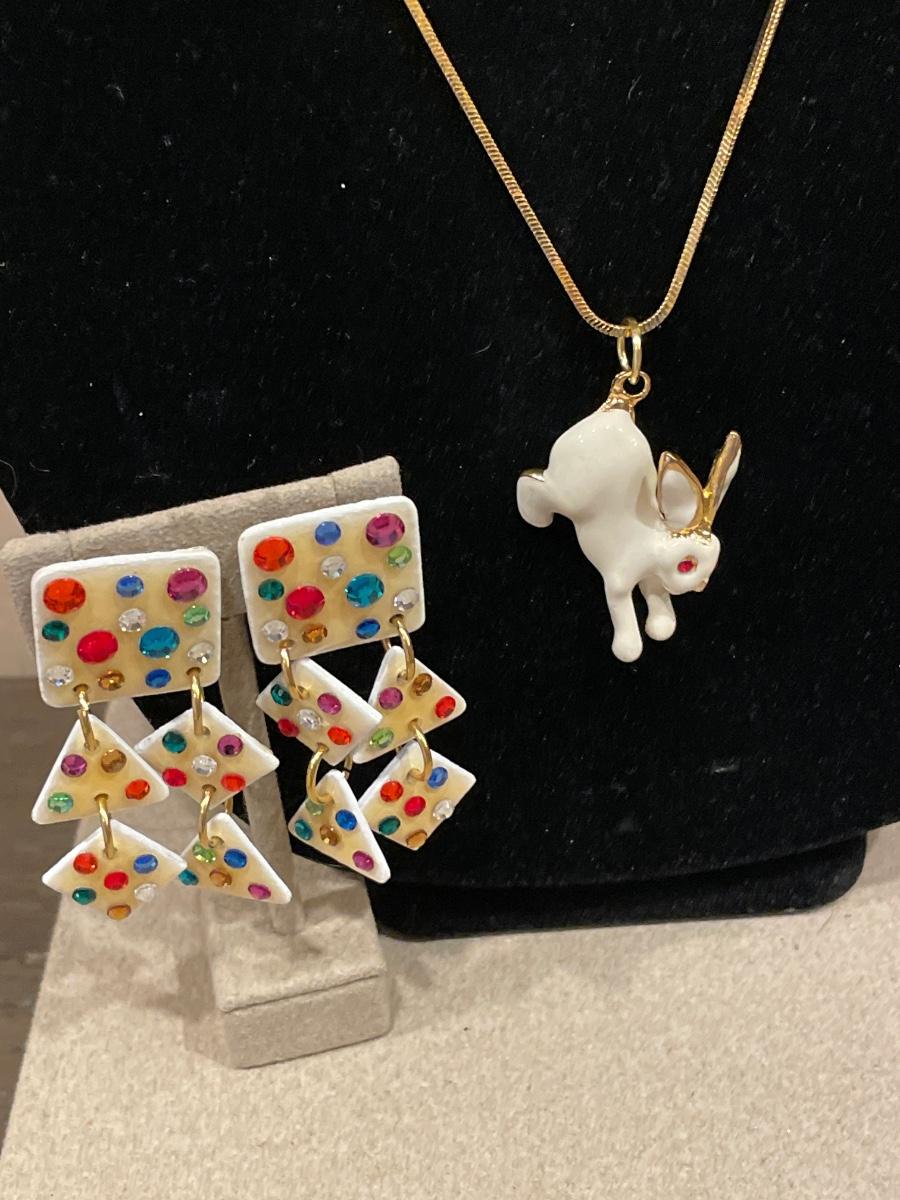PH Oster signed White Rabbit necklace and Mami clip on earrings