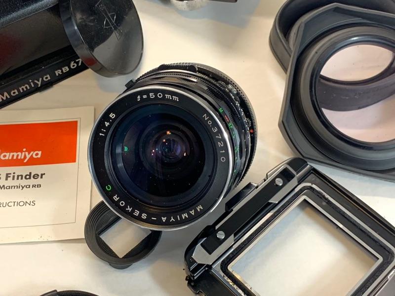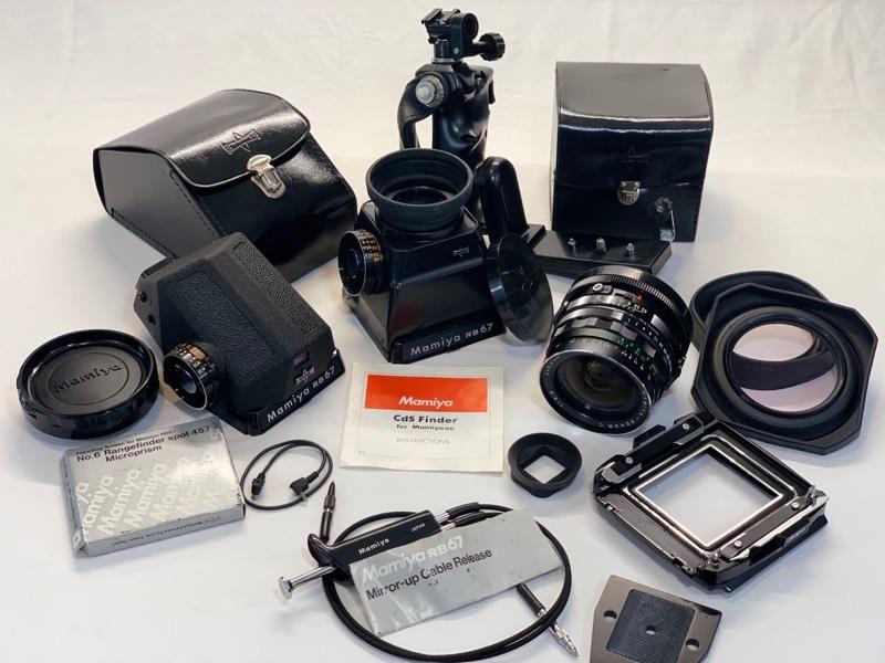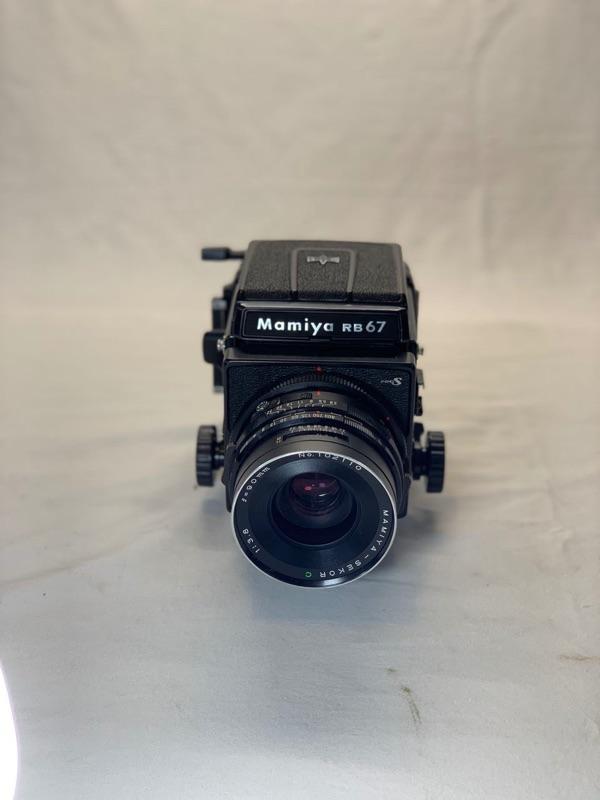 The Mamiya RB67 Professional S is a modular medium format SLR film camera famous for it's versatility and big beautiful 6x7cm format images.  Introduced in 1974, the RB67 Pro-S is the replacement for the original RB67.  The RB67 Pro-S enjoys all the popular features of it's predecessor including: rotating film backs, rack & pinion bellows focussing with close-up capabilities, multiple viewfinder options, user interchangeable focusing screen, leaf shutter lenses that synchronize with strobes at all speeds, fast lever cocking, and a reliable 100% mechanical no batteries required design