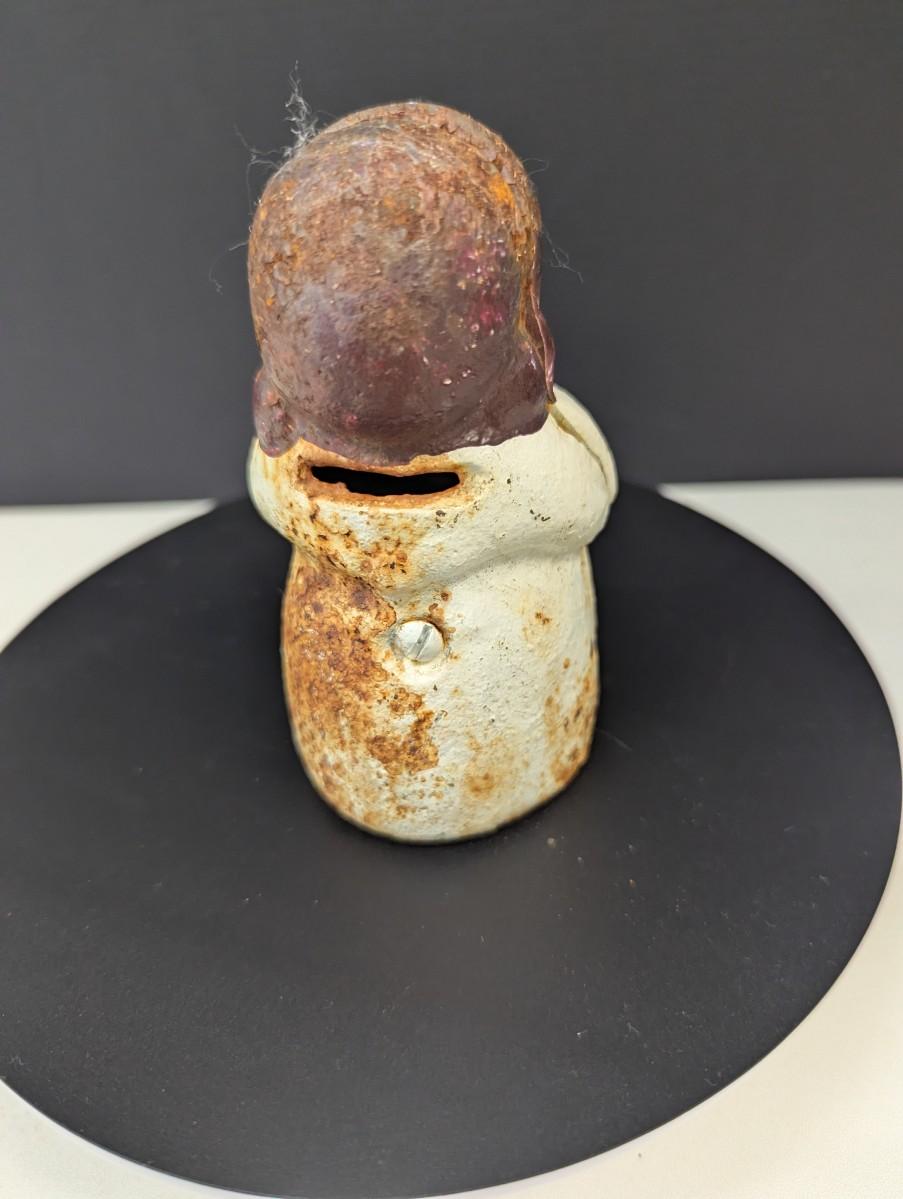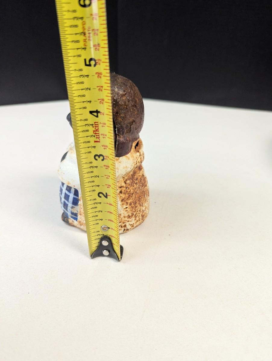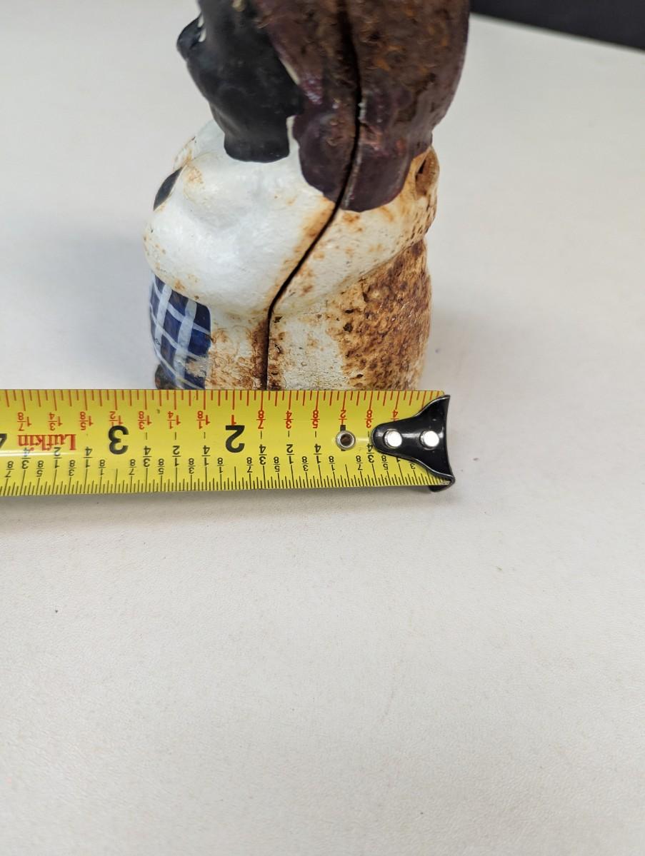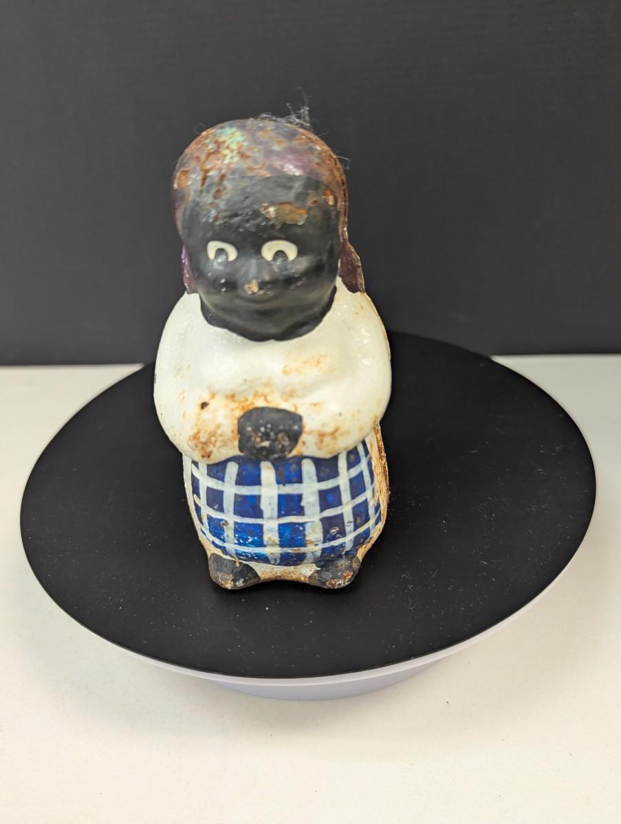 Antique African American Figural Cast Iron Bank Blue & White Checker Apron. Item has oxidation and condition issues. Please see all pictures.