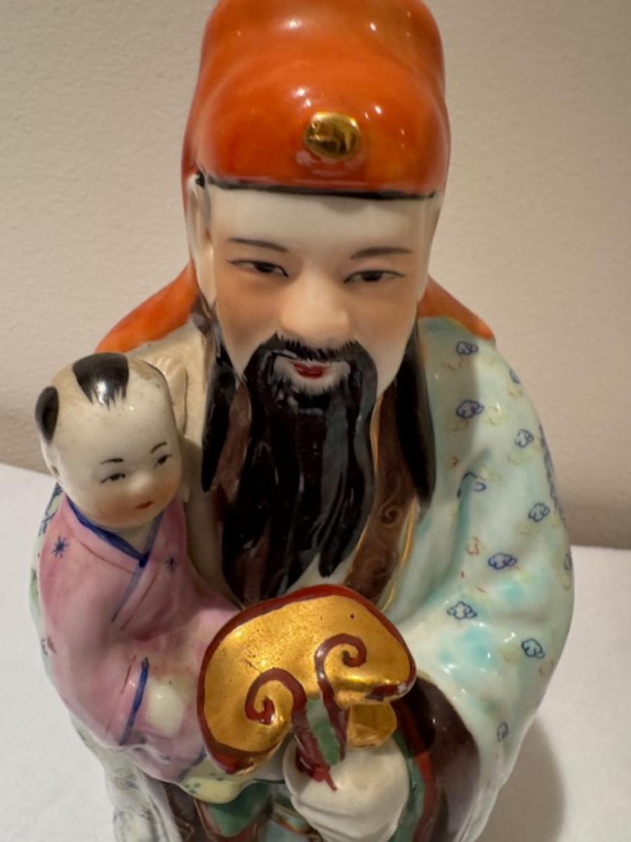 Vintage Chinese Fu Lu Shou Immortal God and baby boy