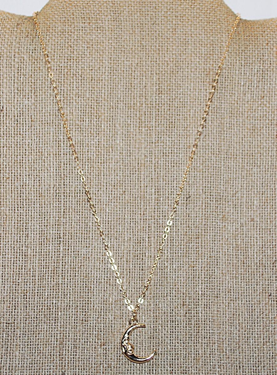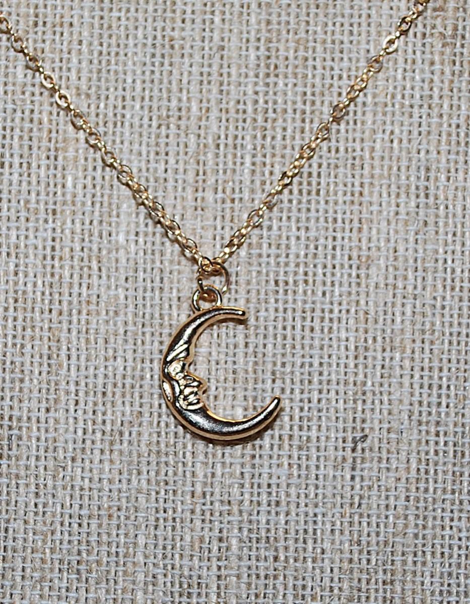 "MAN in the CRESCENT MOON" NECKLACE with Gold Tone Necklace Chain & Lobster Clasp 18" L