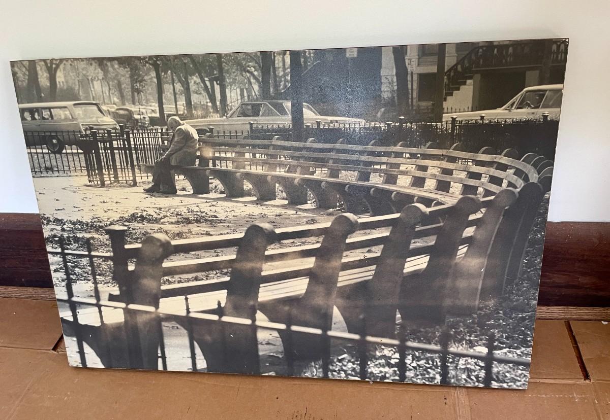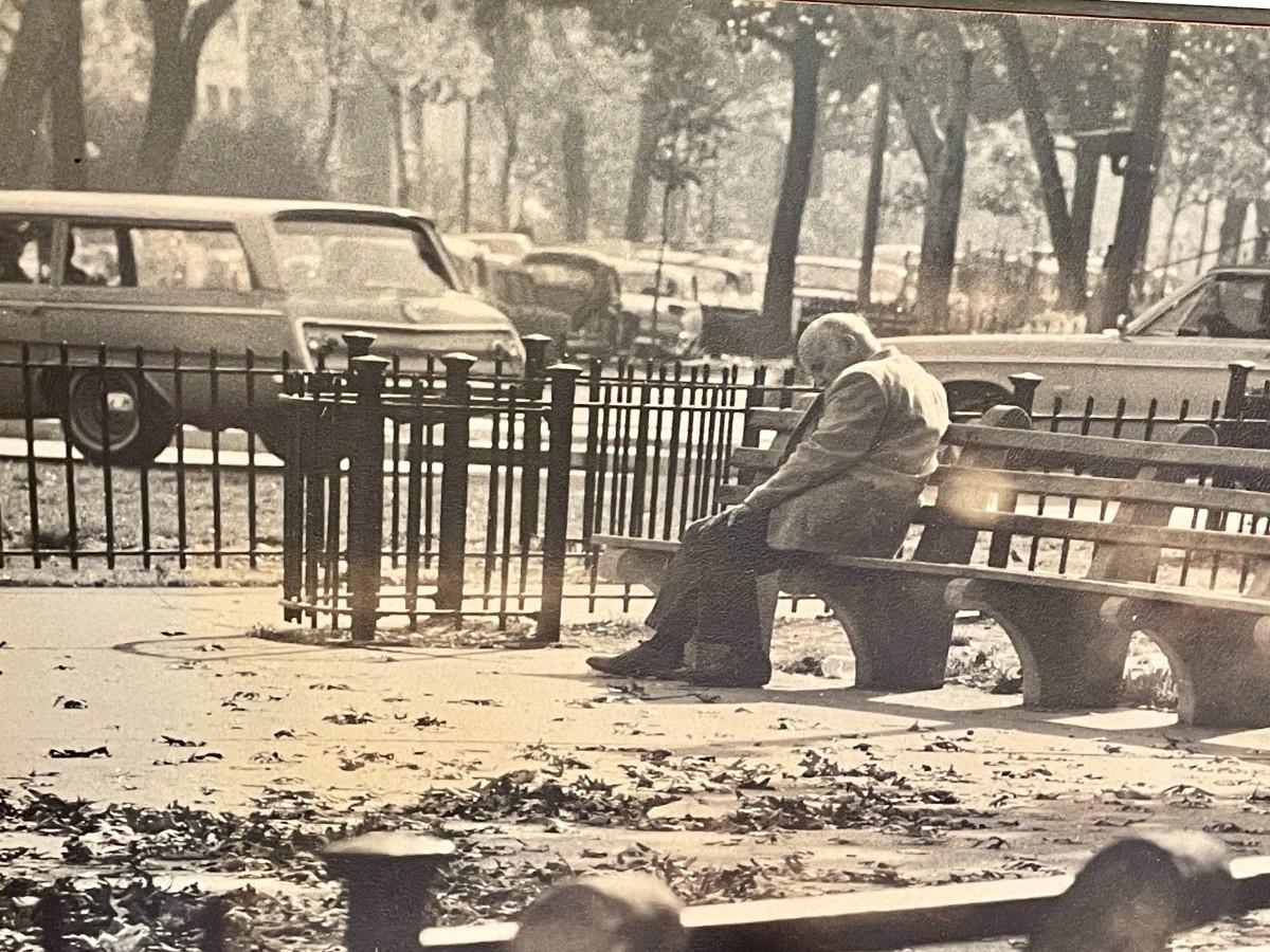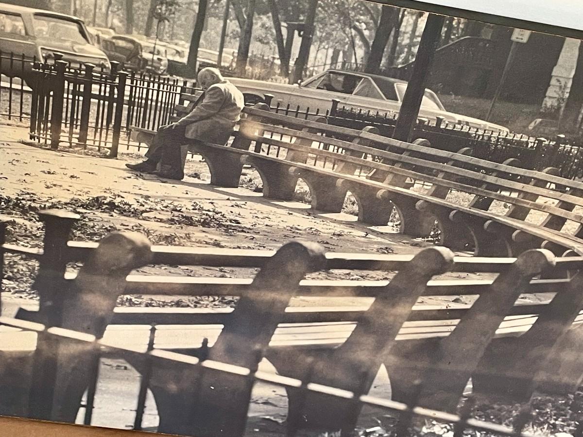 "Man on Bench" framed photograph by Edward Hollander, 1966