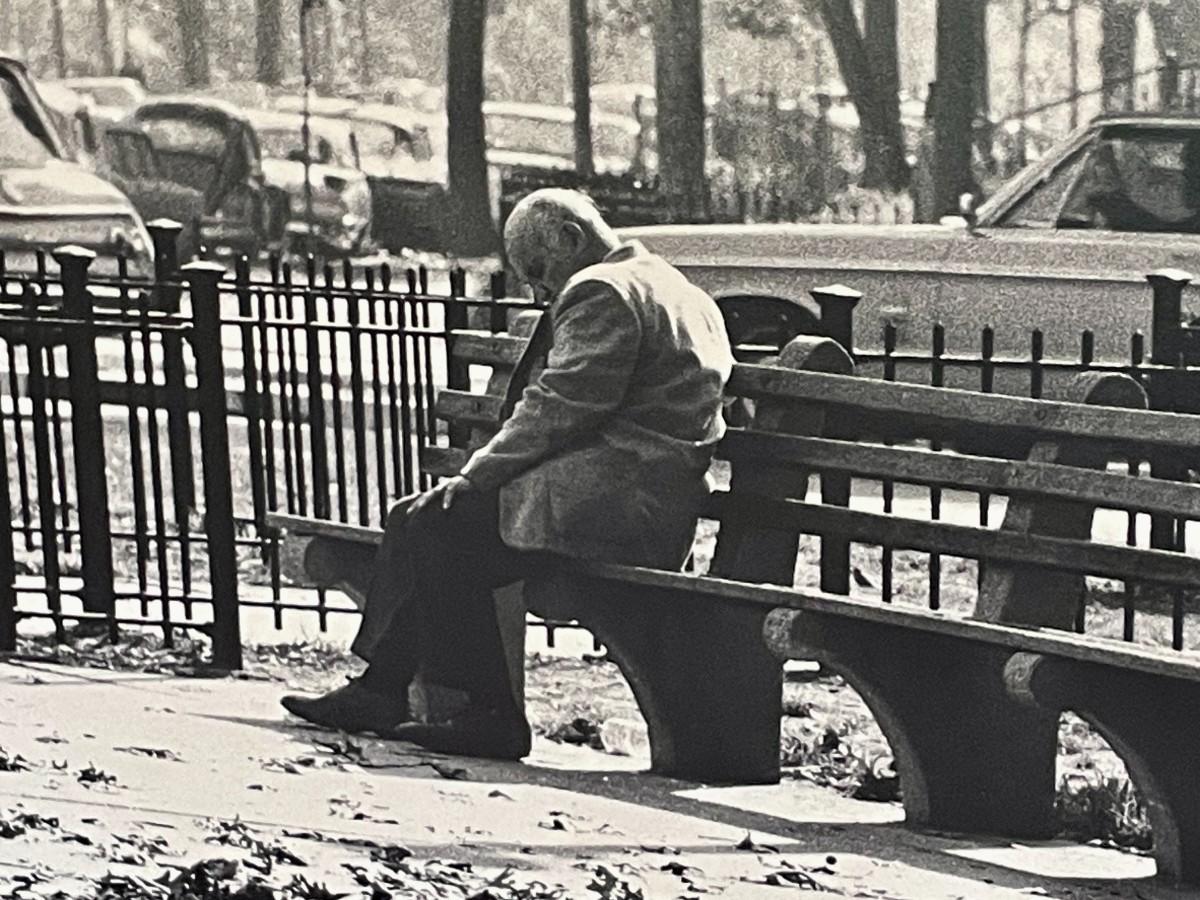"Man on Bench" wrapped photo by Edward Hollander, 1966
