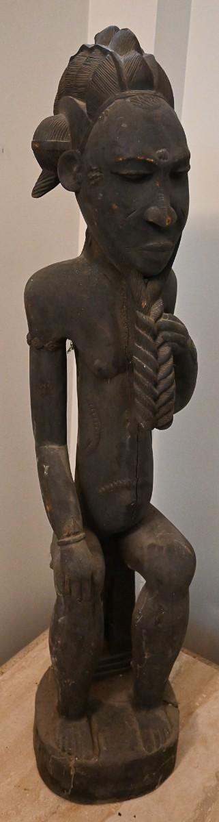A man sculpture by an unknown artist. Wood. Approx. 41" x 9" x 10".
