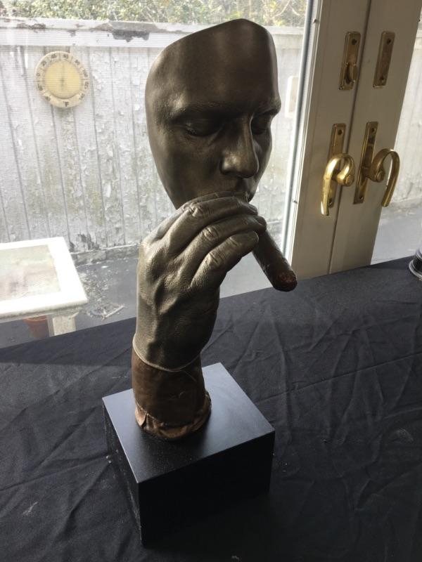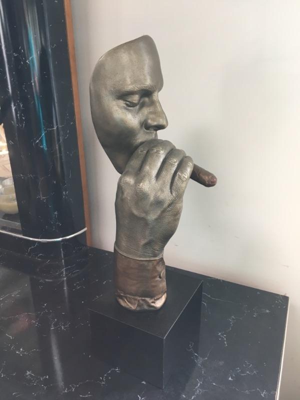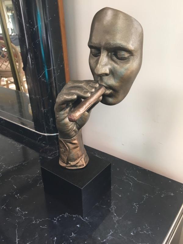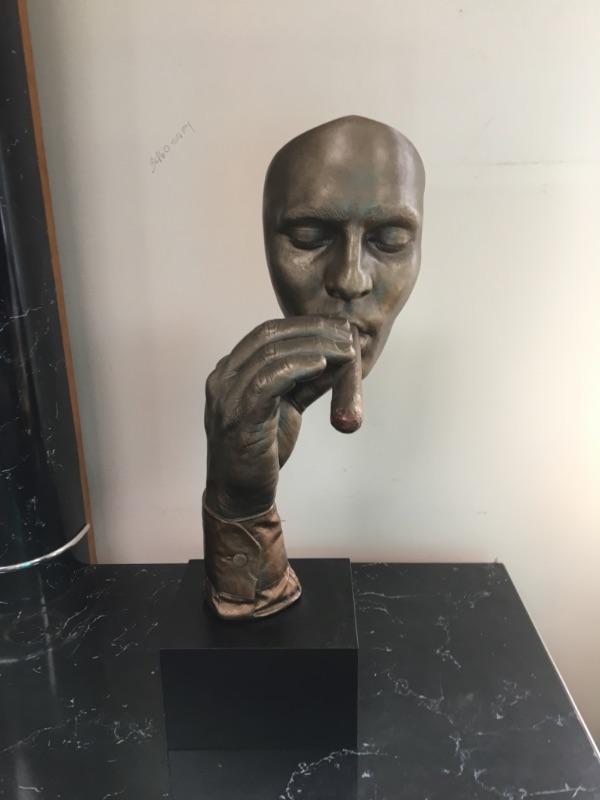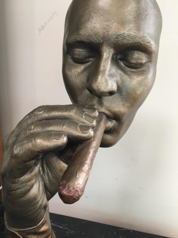 Unique piece of art - man holding cigar on base