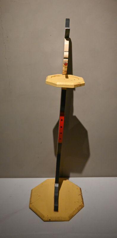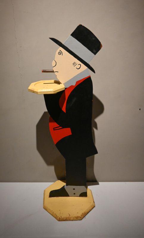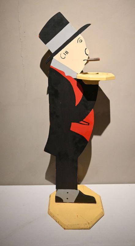 An untitled man-shaped stand by an unknown or anonymous artist. Wood, paint. Approx. 12" x 11" x 37". Please note, the base has come loose, so that the man leans to one side, as photographed.