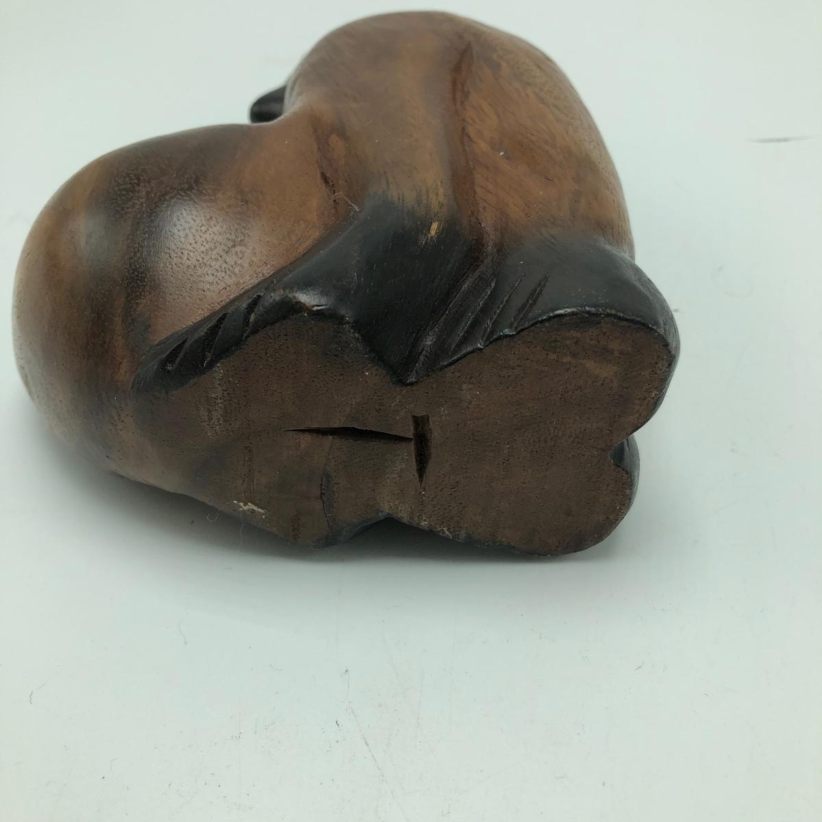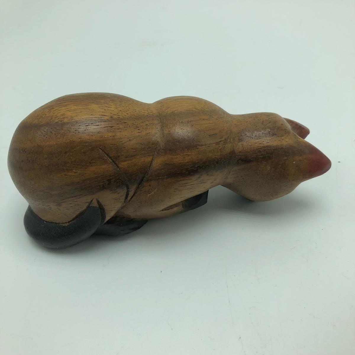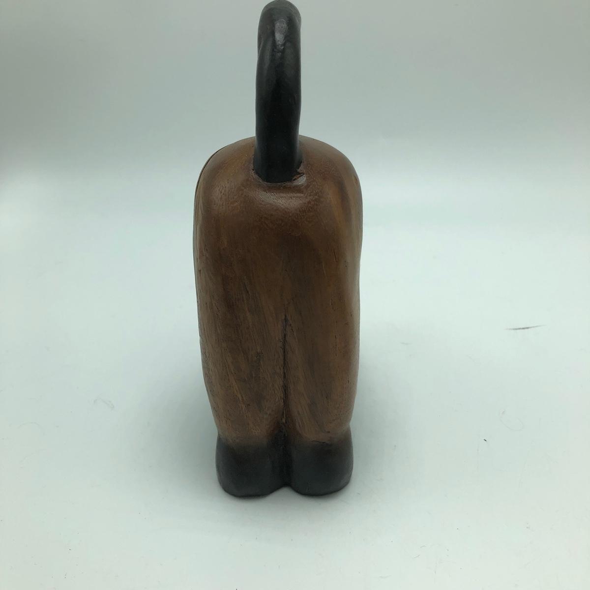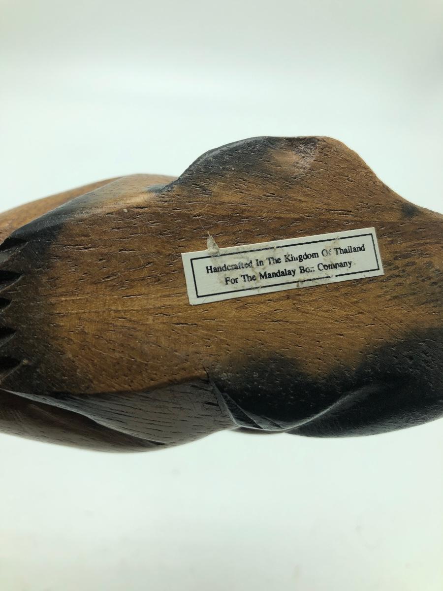 Lot includes a Mandalay Box Co. handcrafted wooden cat and two other carved wooden cats with no markings. Tallest cat measures 8” tall.