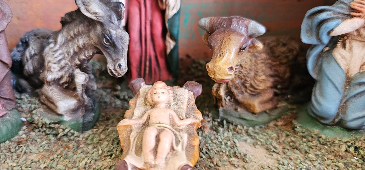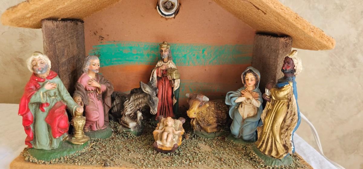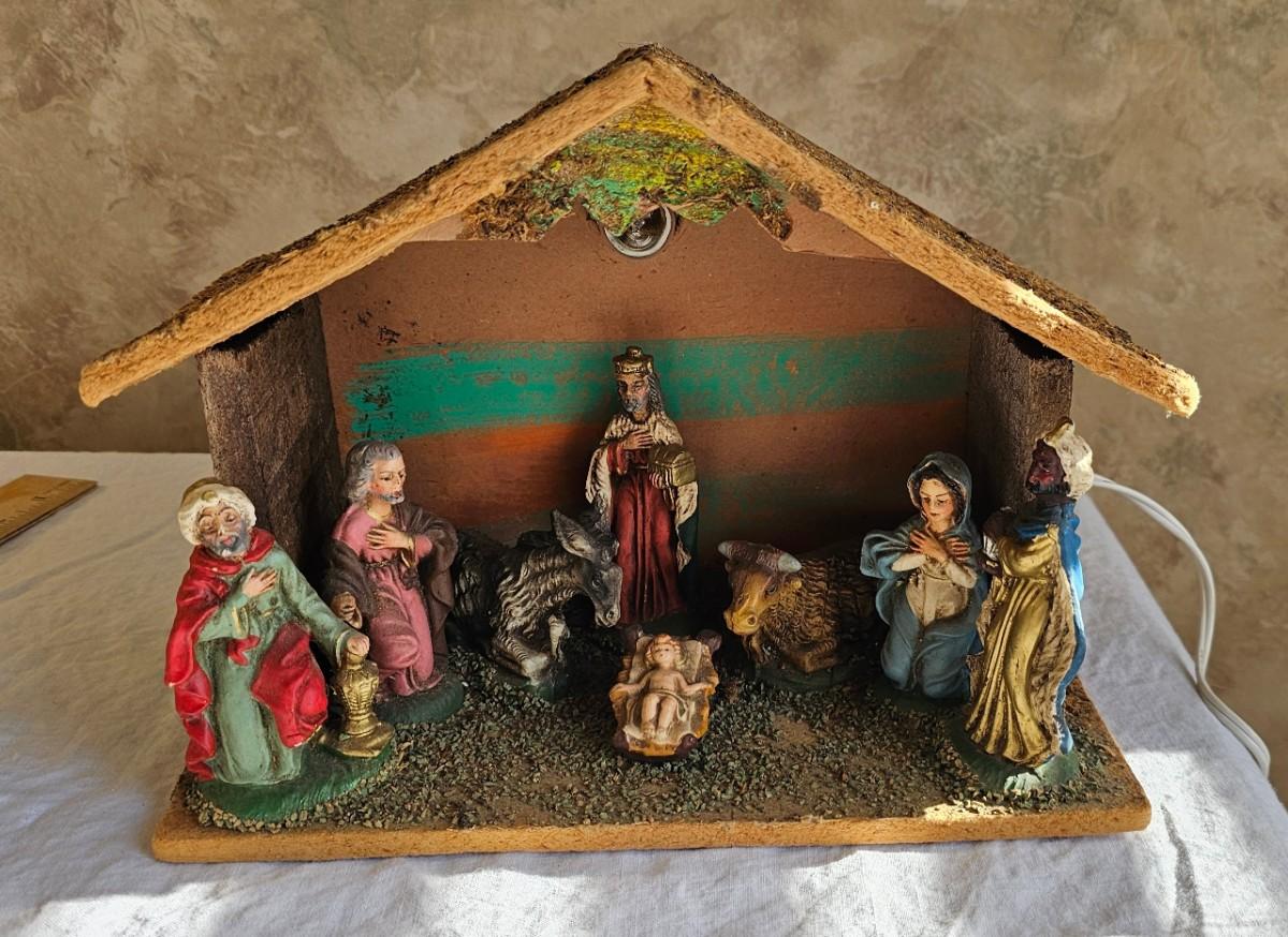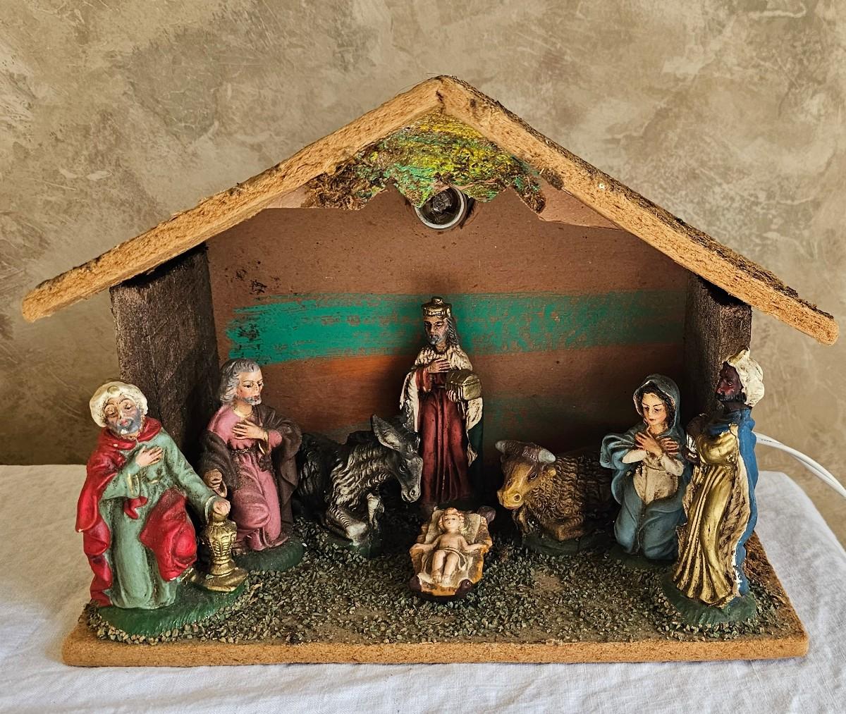 Nativity scene with light 8" high