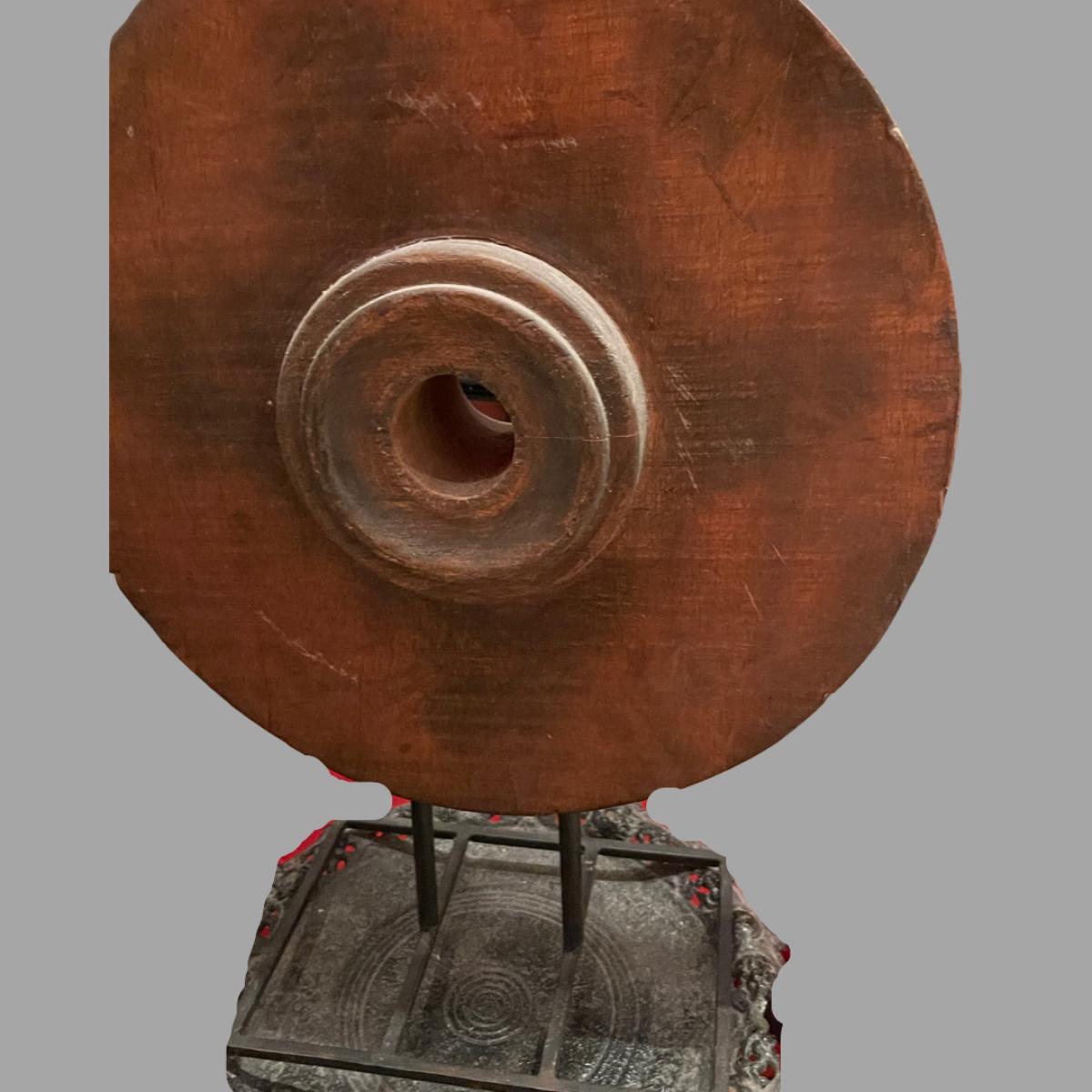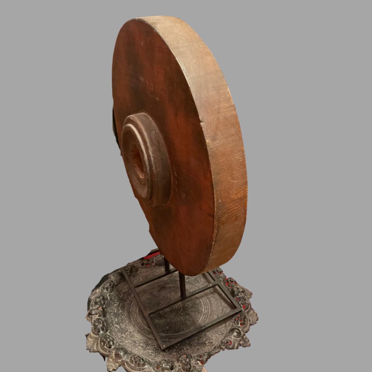 This piece is a beautiful hand carved medallion made out of solid mango wood. It has a metal base to showcase it's beauty.