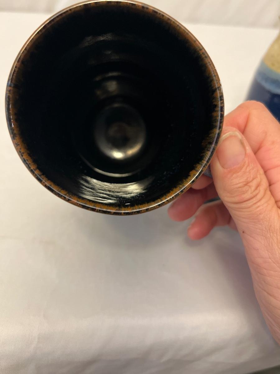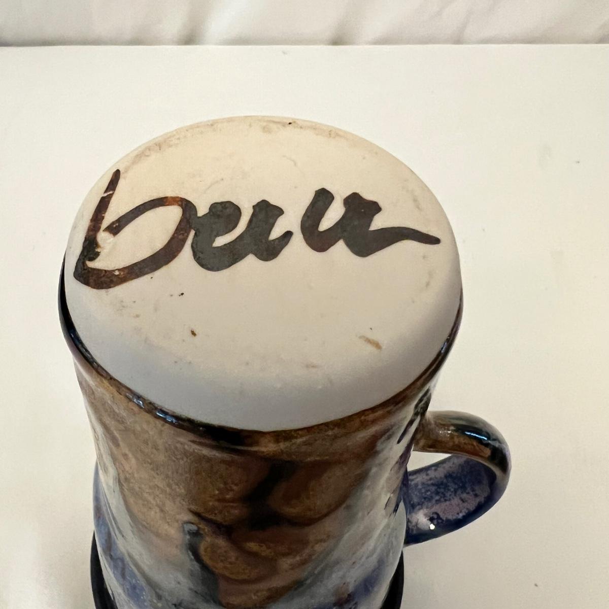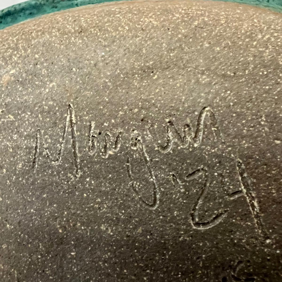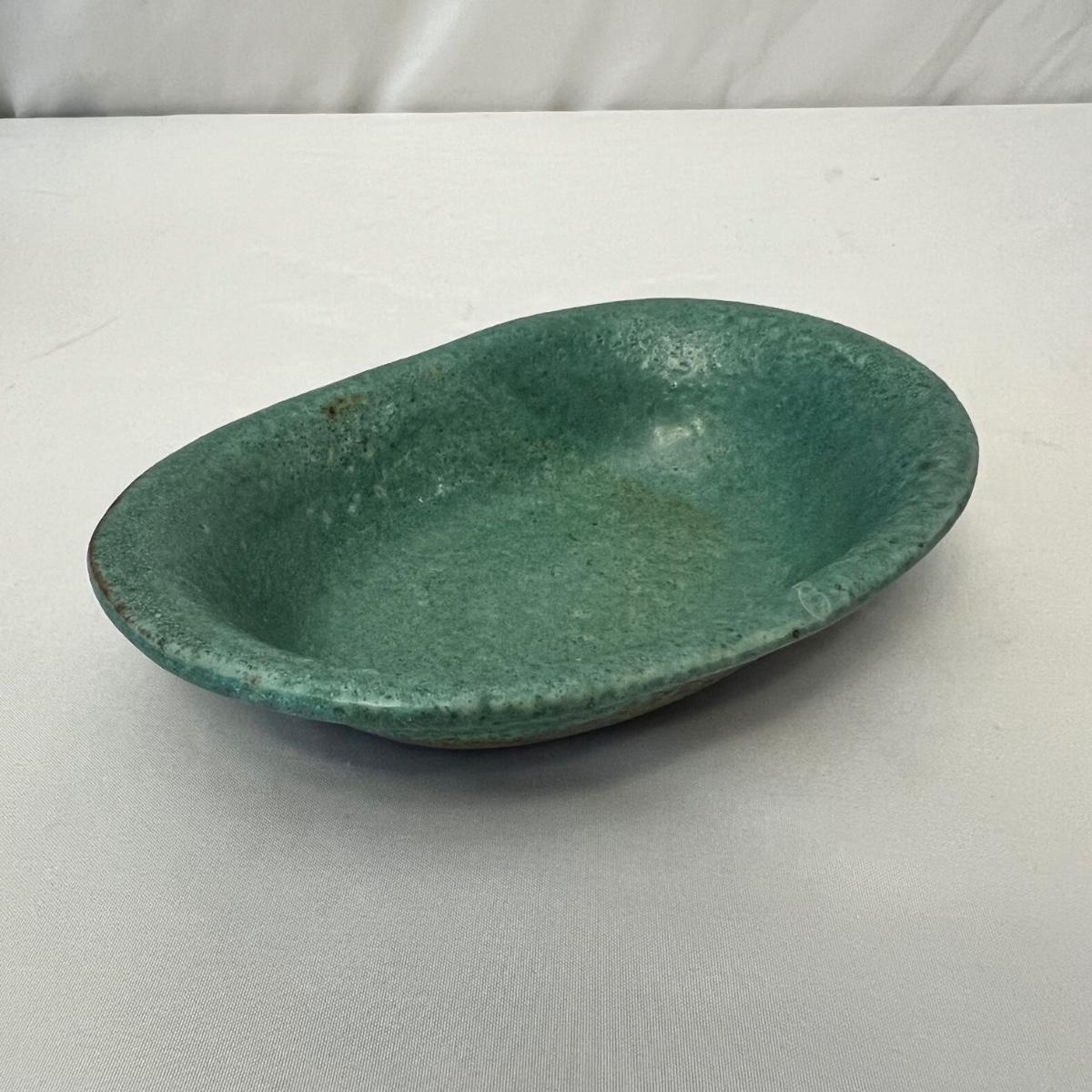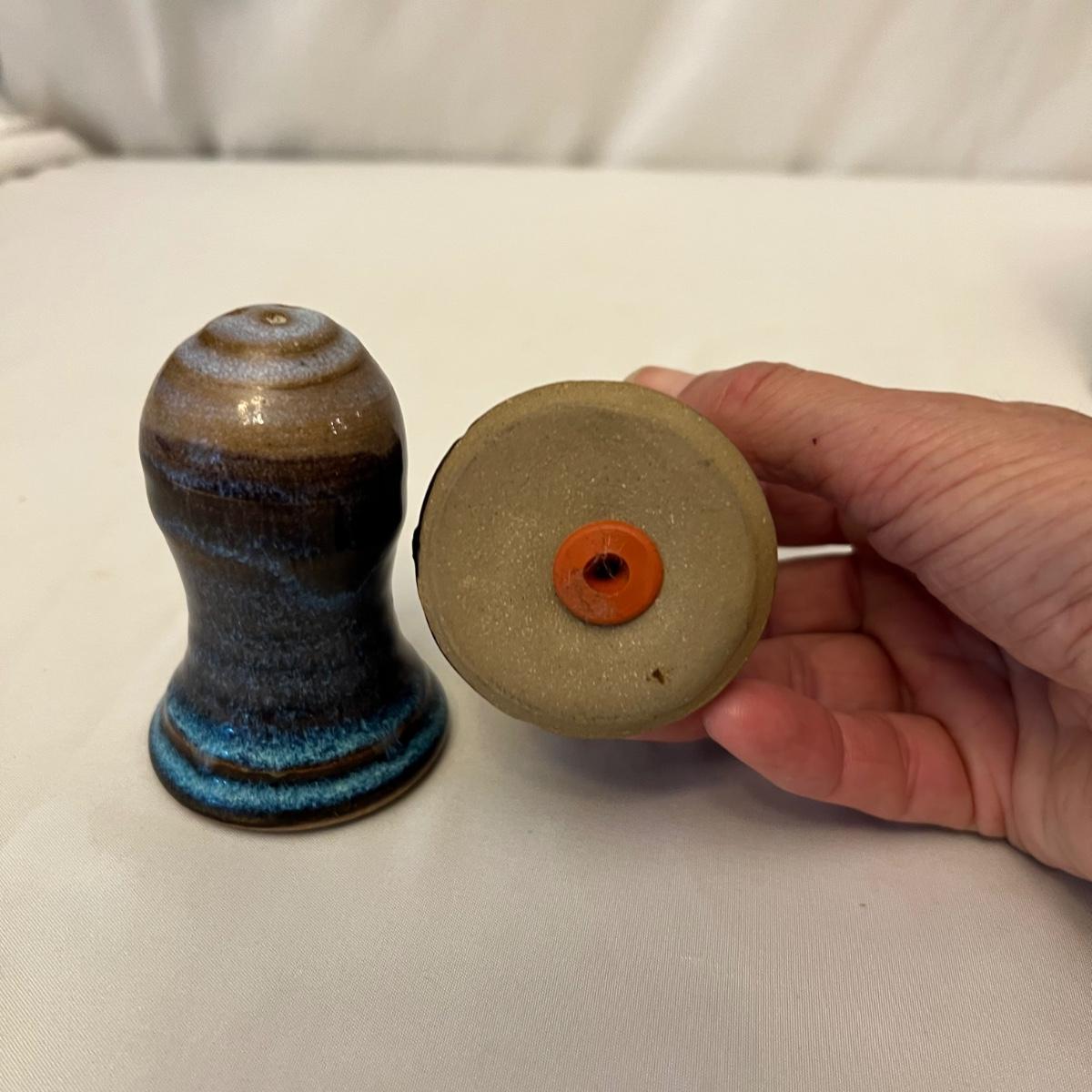Six pieces of pottery includes two small dishes from Mangum Pottery. The teal glazed dish measures 4.5” x 7” x 1.5”H. Other items include S & P shakers, a mug with silicone top cover and a small pitcher. All pieces are signed; the pitcher has the faintest makers mark which is illegible.