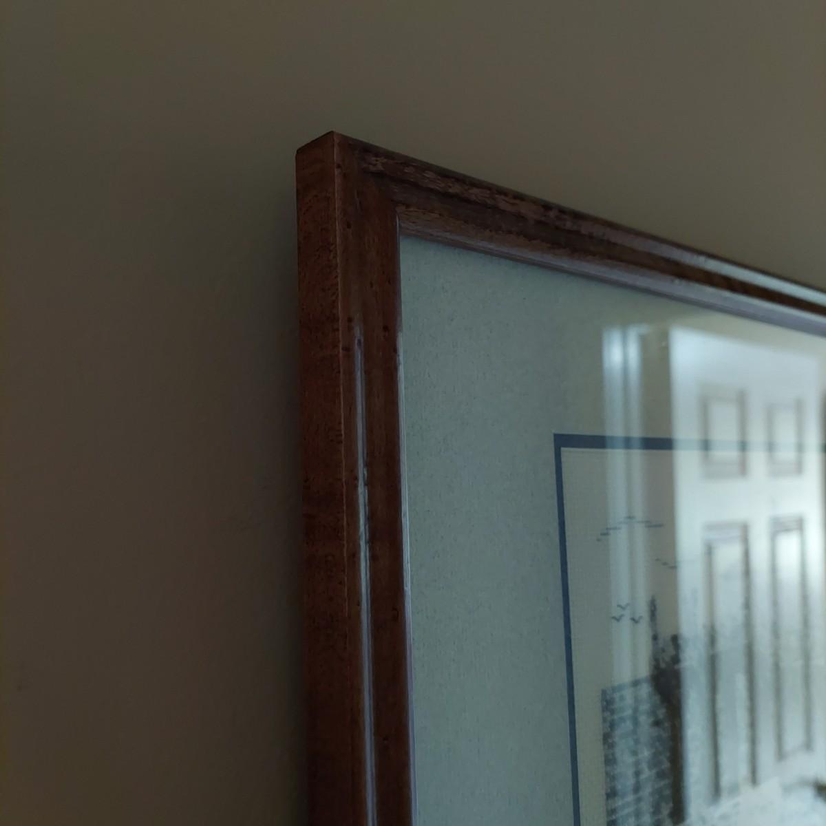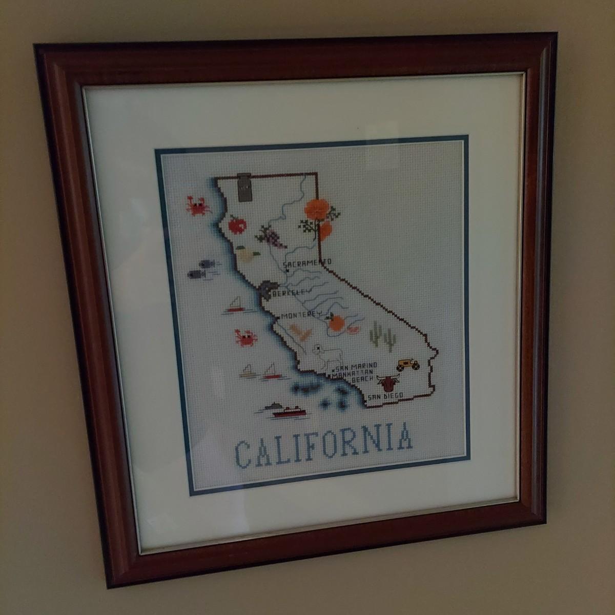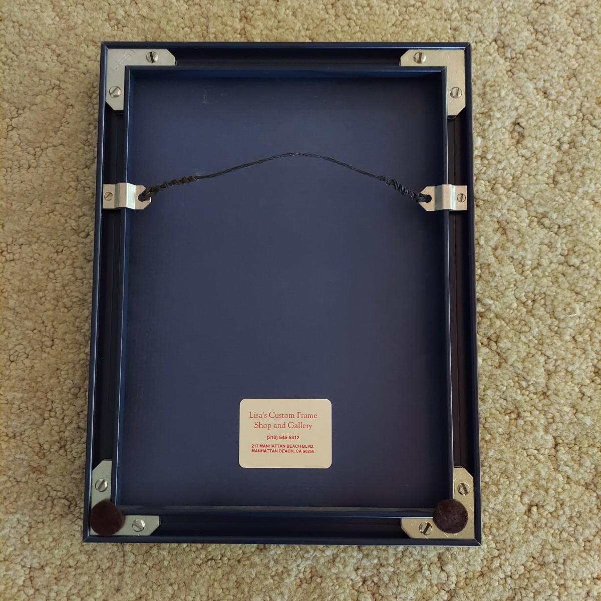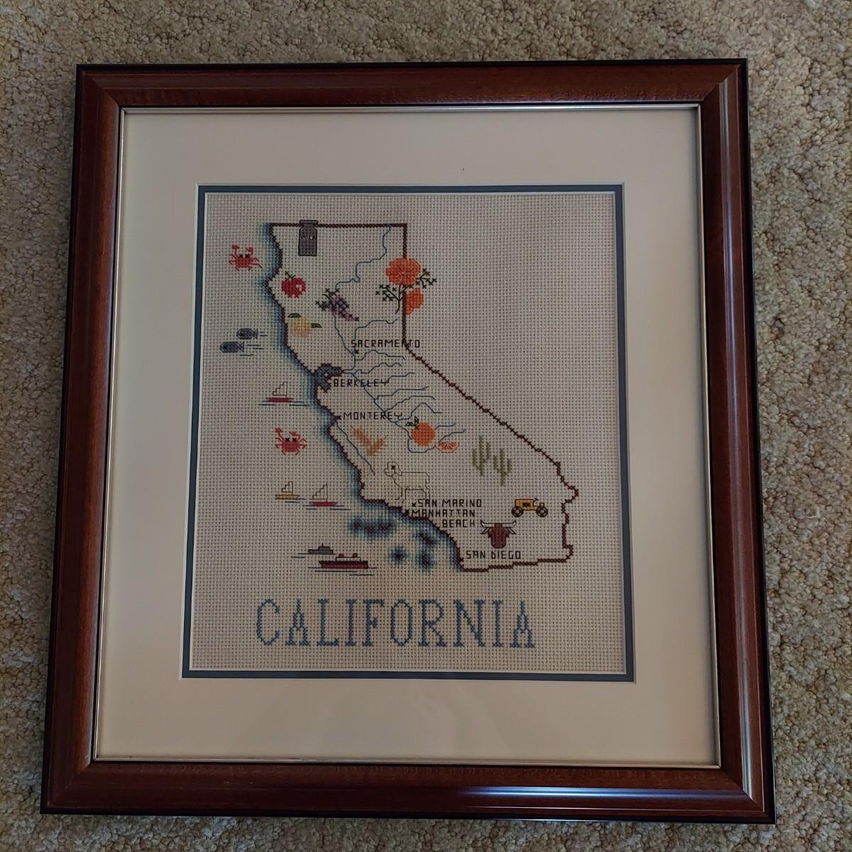 Three framed cross stitch pieces representing Manhattan Beach, California. Two are double matted. The small blue frame is approximately 7.5" x 1" x 10"H. The medium wood frame is approximately 14" x 1" x 12"H. The large frame is 15" x .75" x 16"H. Shipping available. Shipping certain items can be costly. We suggest contacting our preferred local shipping provider, Postage Express, with dimensions and getting an estimate before bidding: (828) 670-5501 or postageexpress@yahoo.com.
