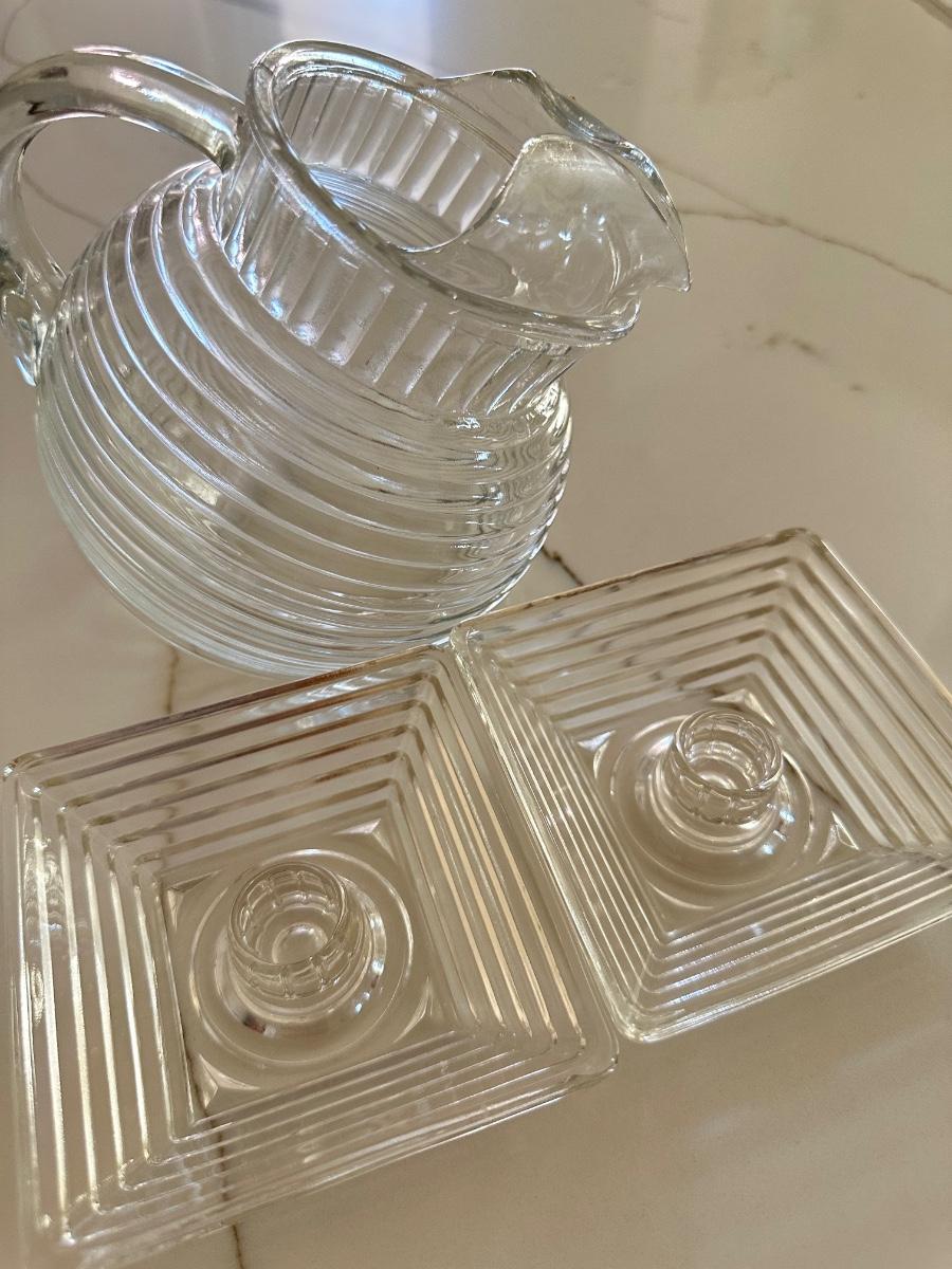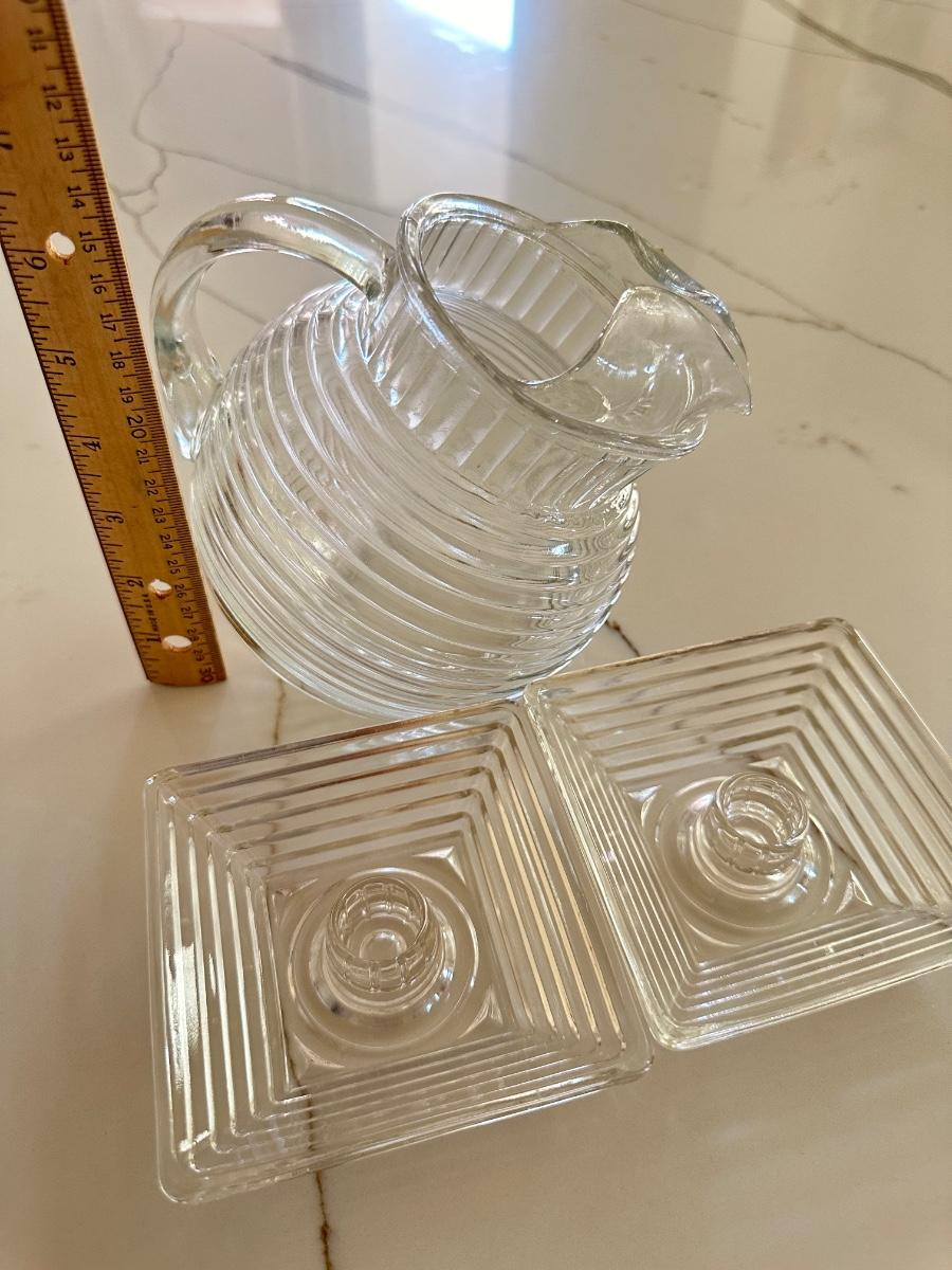 Manhattan Glass Small Pitcher and set of 2 Candle Sticks