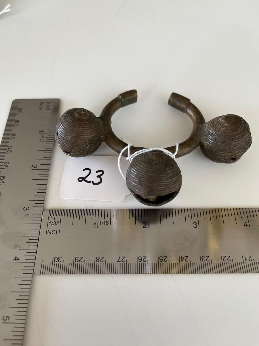 Manillas were traditional African horseshoe shaped bracelets made of metals such as iron, bronze, copper and very rarely gold. Decorative manillas were worn to show wealth and status in Africa. Europeans used them as a form of currency in west Africa to buy and enslave African people.