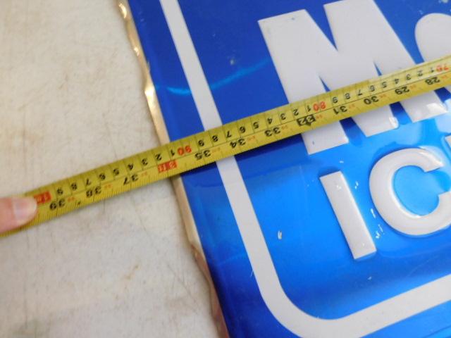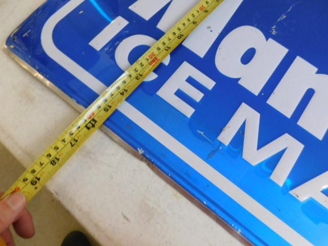 Manitowoc Store Display Metal Advertising Sign 36"x16" shows use scratches, dings, wear