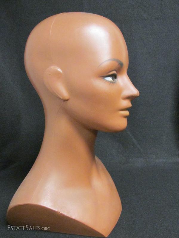 Beautiful Plastic Mannequin Shoulder Length with Hat, Faux Pearl Necklace and Pair of Earrings. Please view photos at full screen size for best detail.