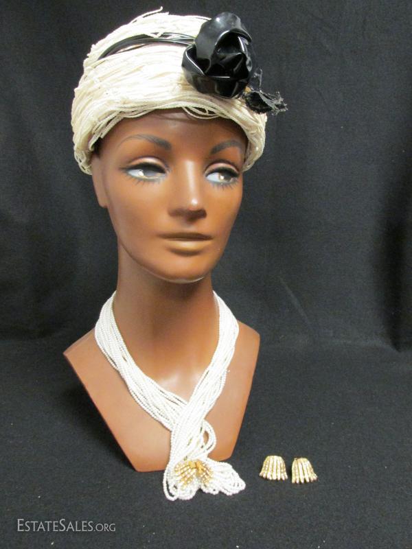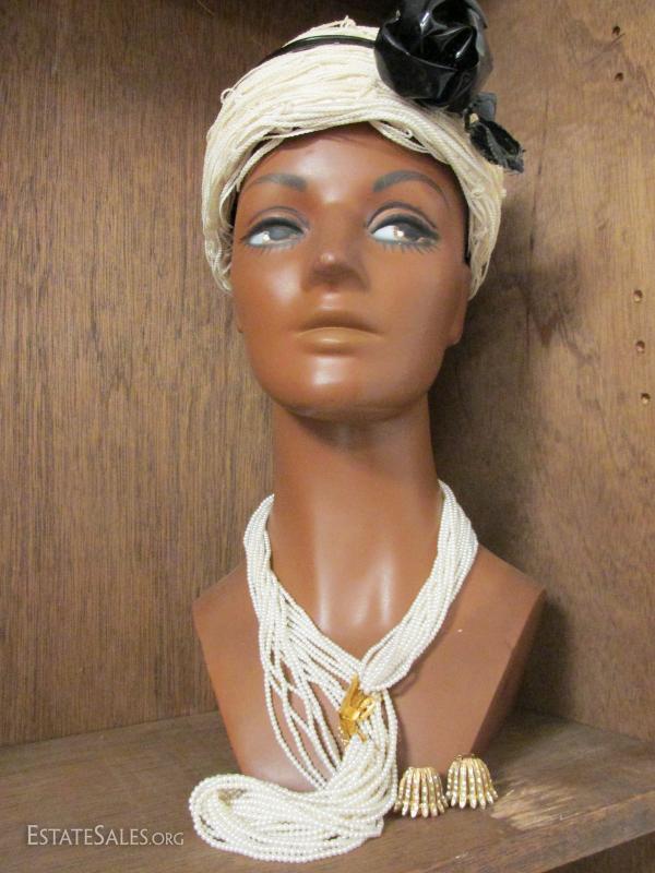 Mannequin with Faux Pearl Necklace, Earrings and Hat