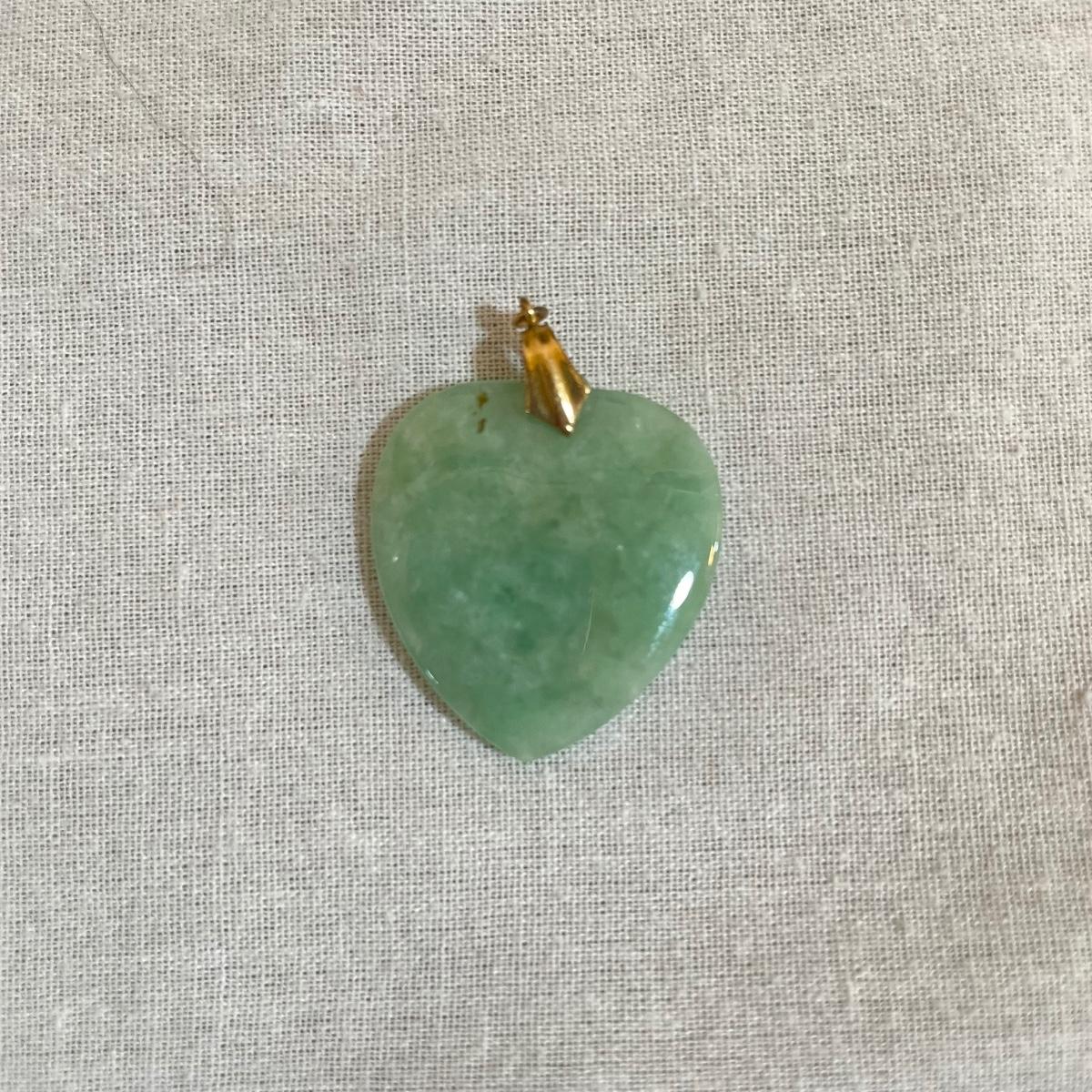 Mano Figa Pendant, Jade Heart and 14K Chain (K-SS)