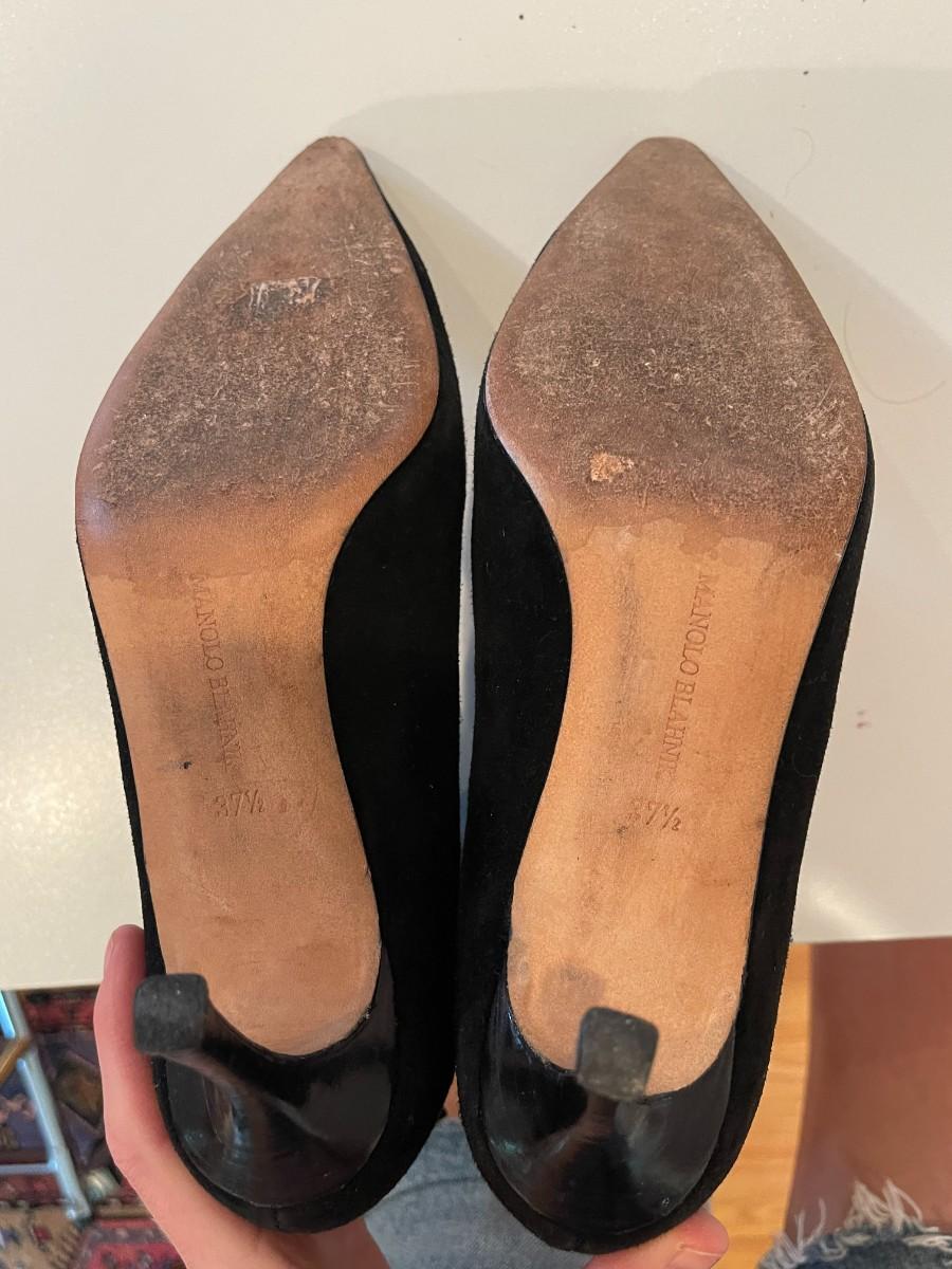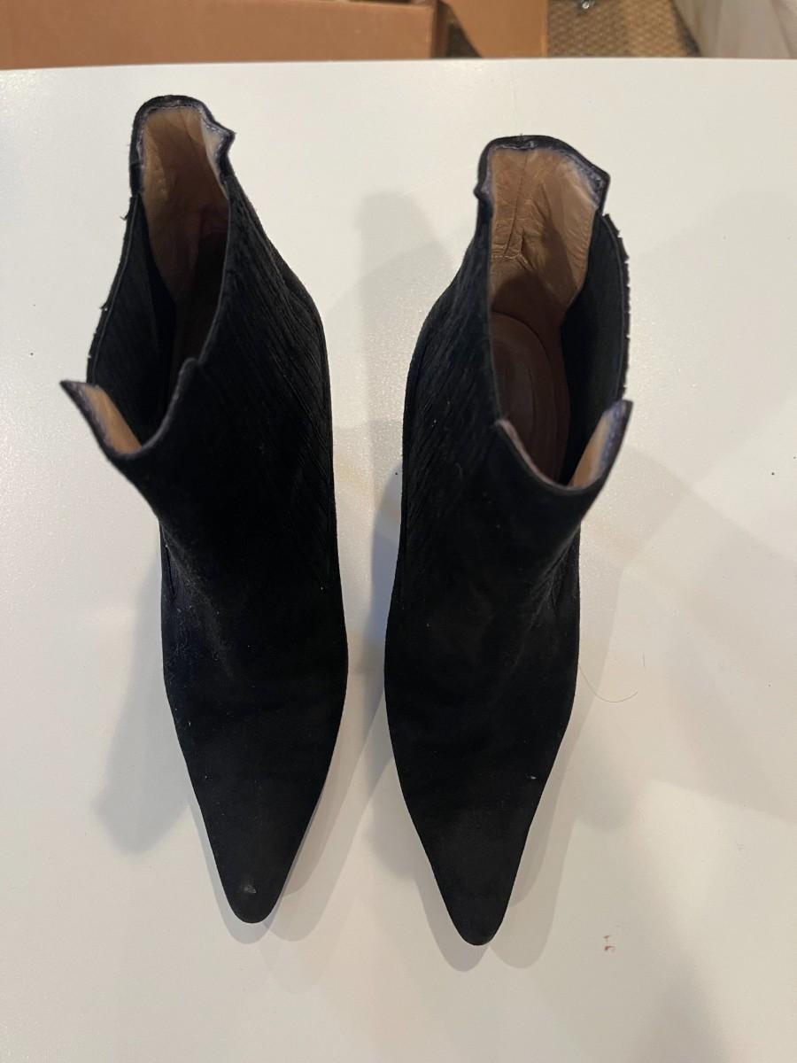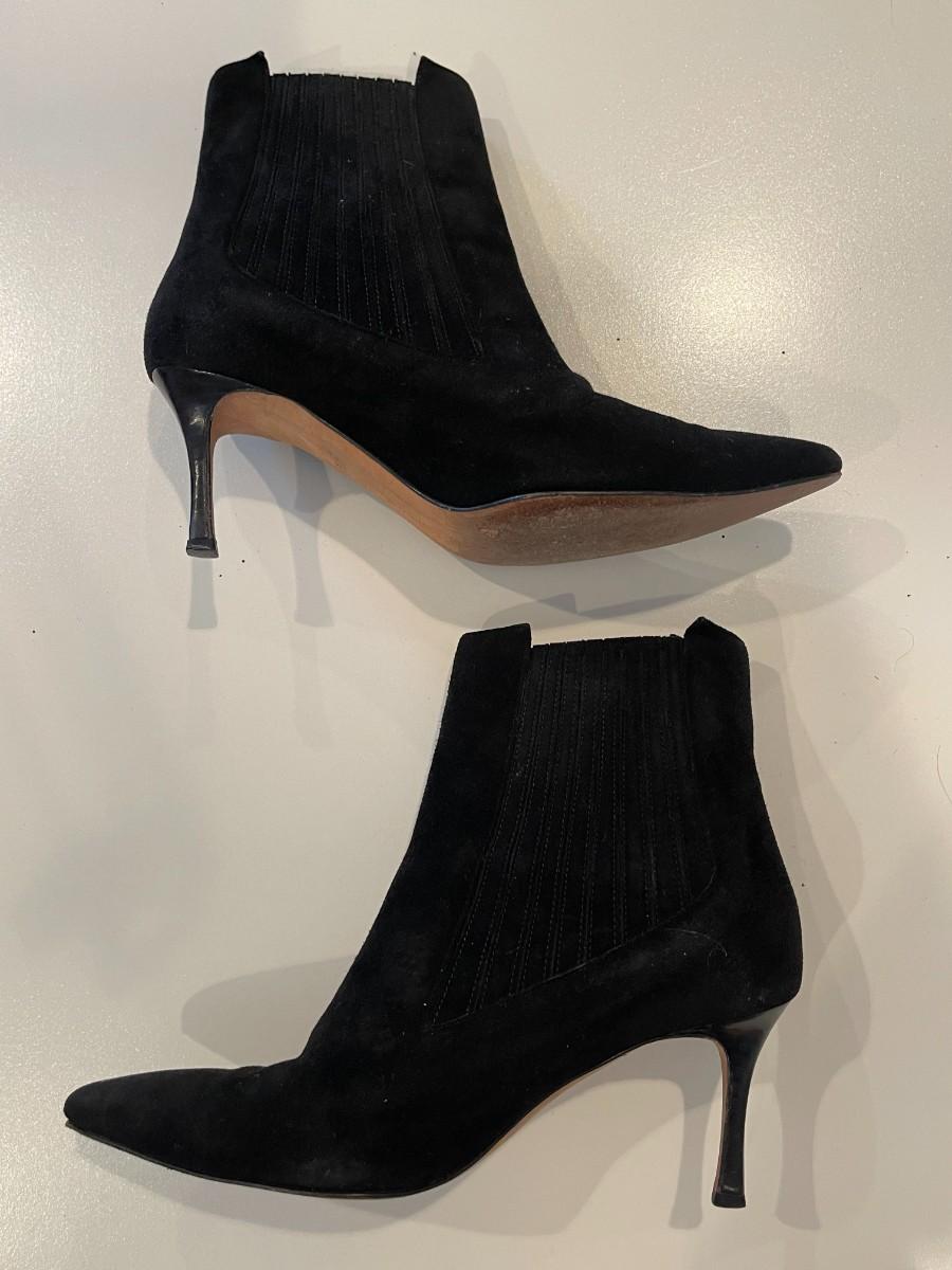 MANOLO BLAHNIK: BLACK SUEDE BOOTIES (WOMEN'S SIZE) 37.5