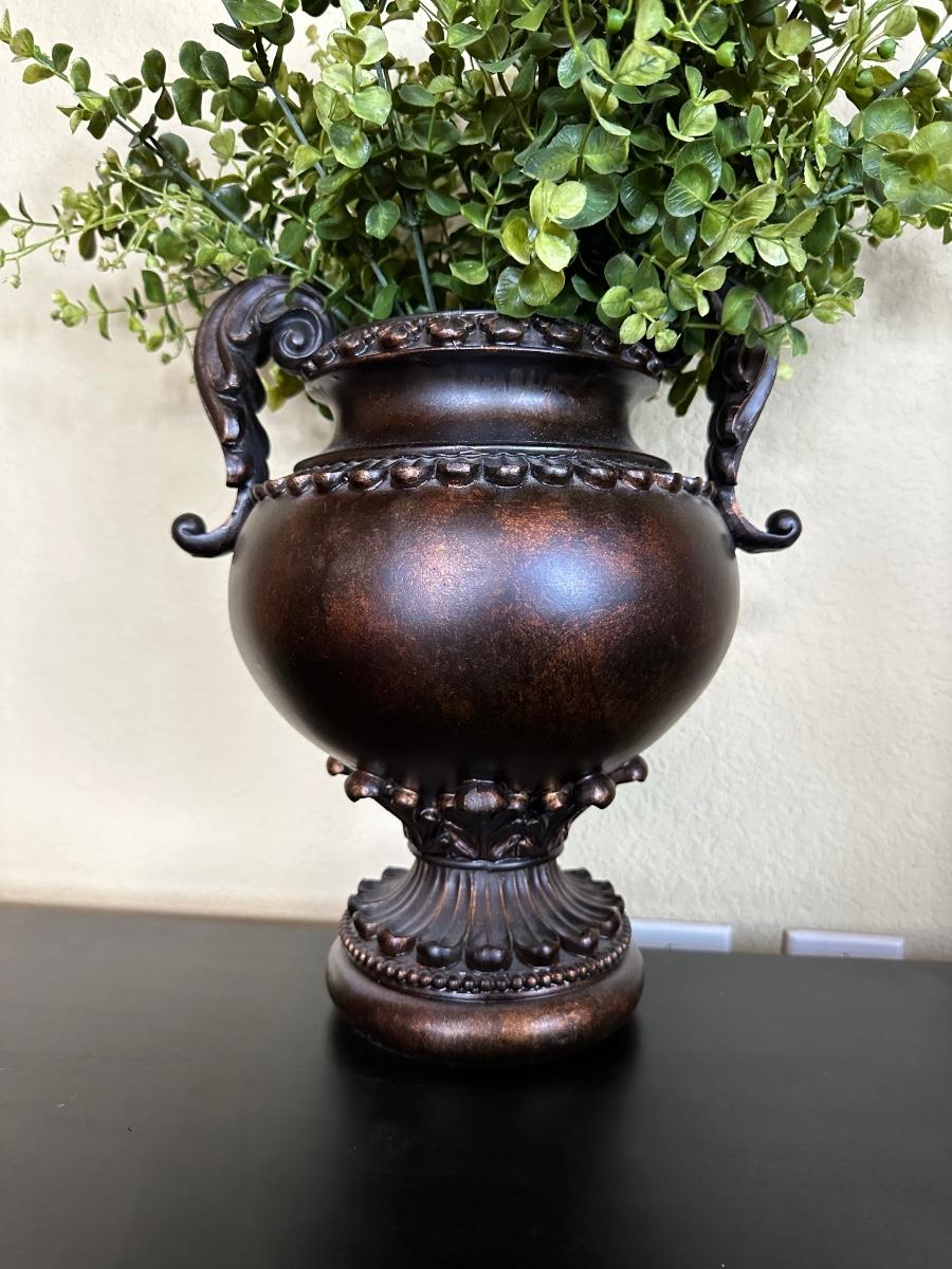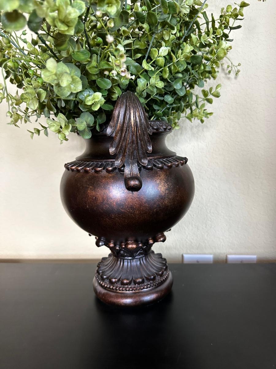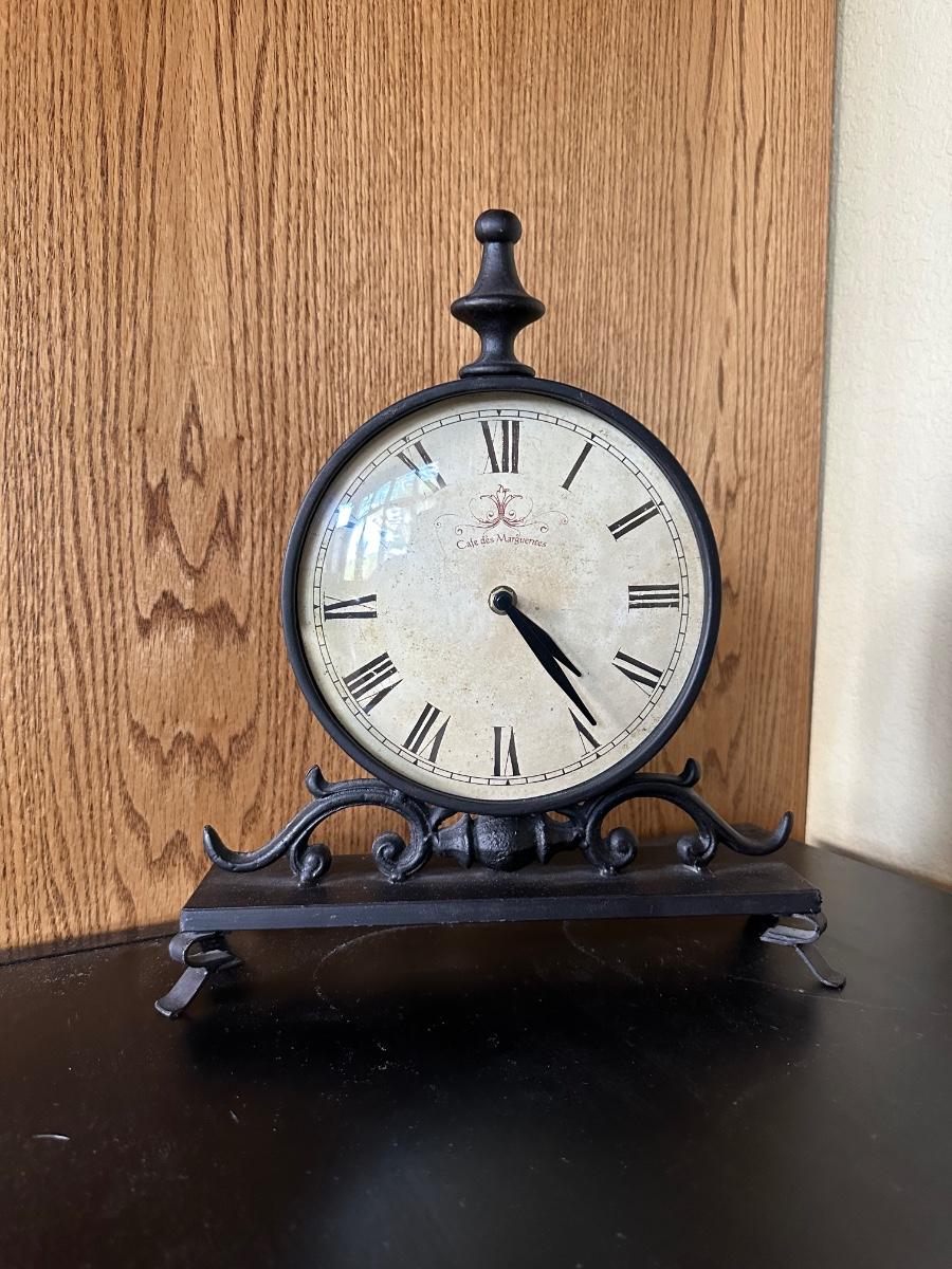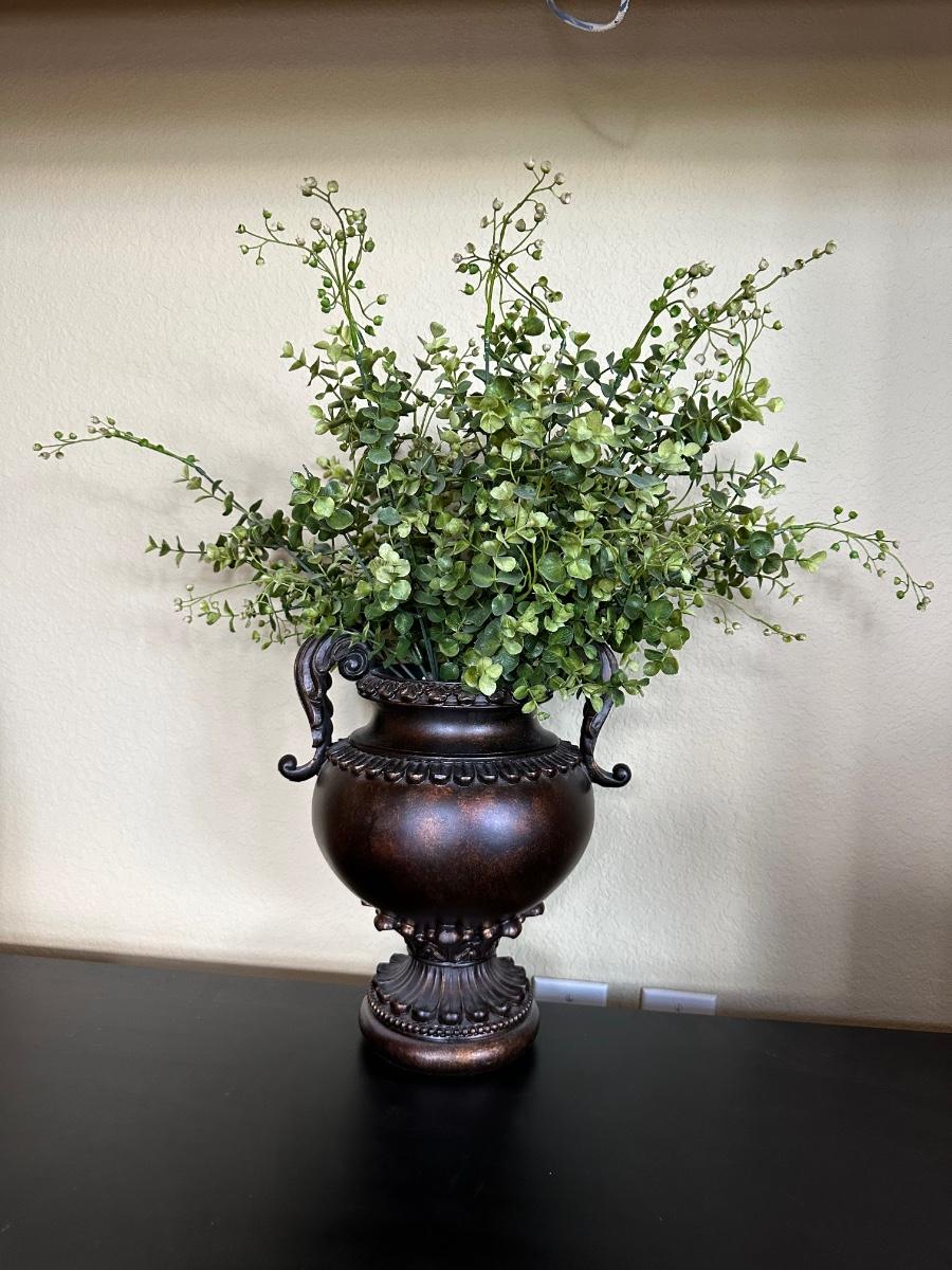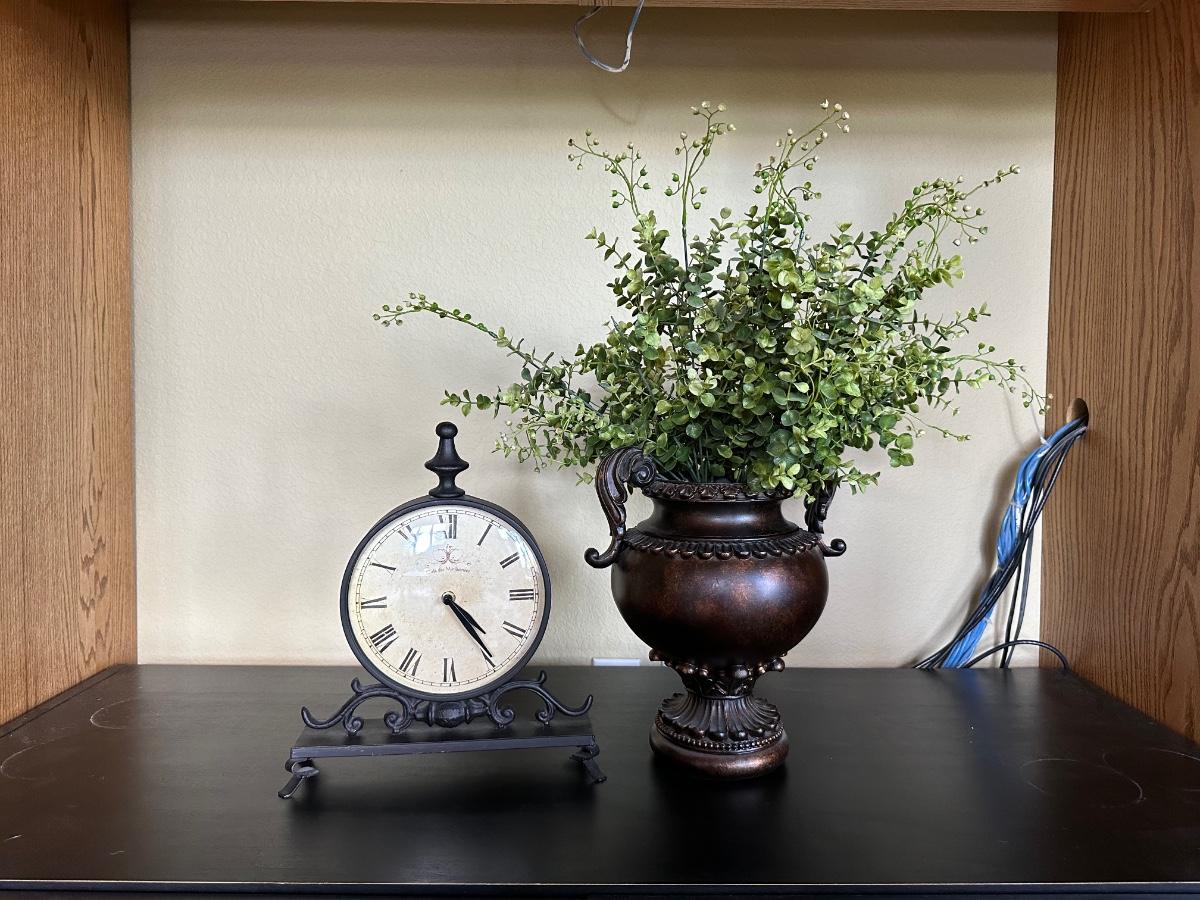 MANTAL CLOCK & VASE WITH FAUX FOLIAGE