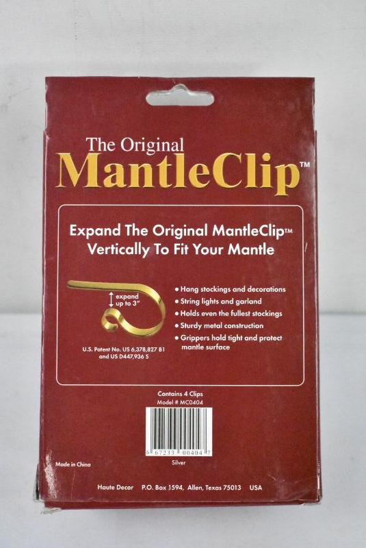 Mantel Clips for Stockings, Lights, & Garland. Silver Toned - New