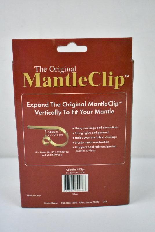 Mantel Clips for Stockings/Lights/Garland/etc. Box of 4, Silver Toned - New