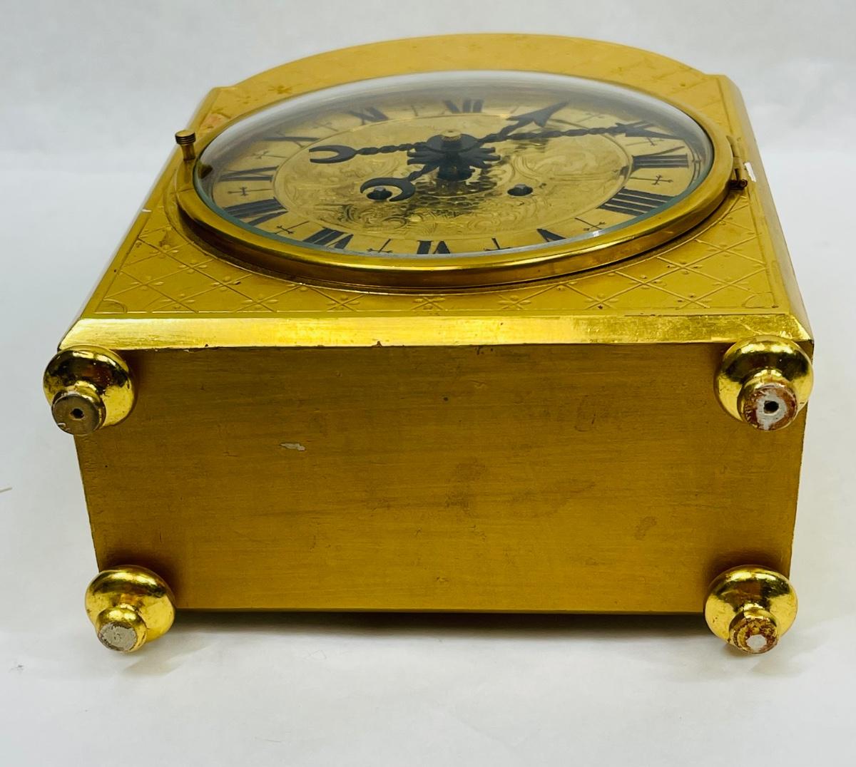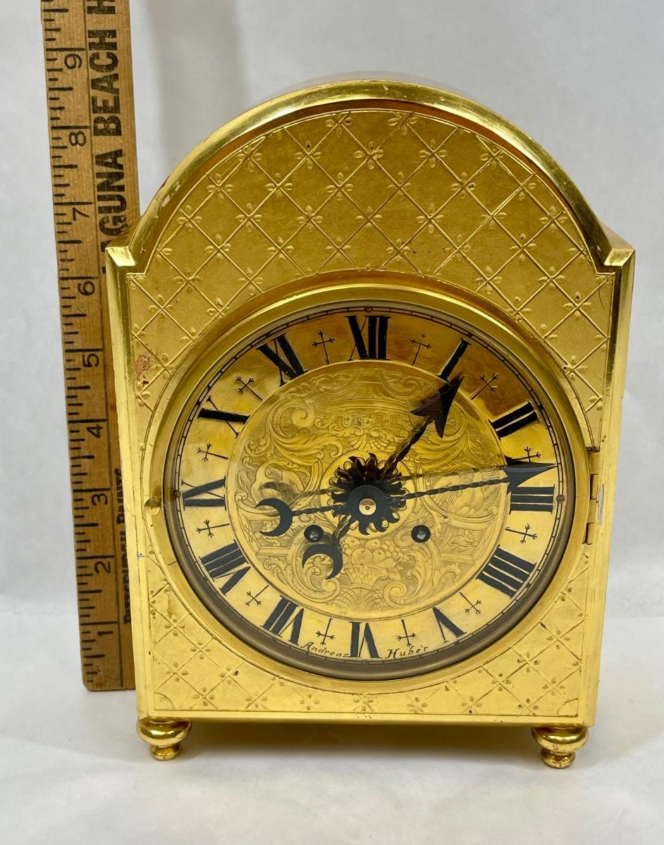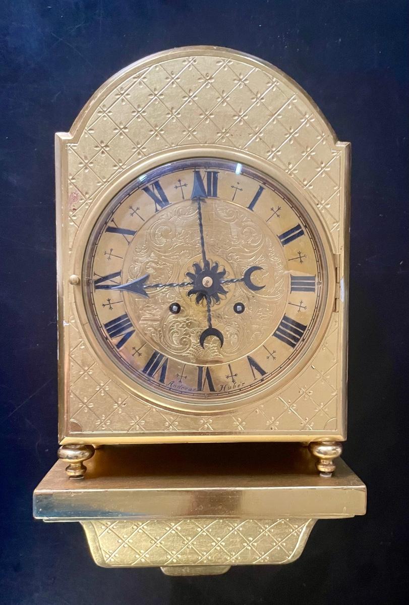 Includes a small custom wall shelf for display. Front and back doors open and close. Clock uses a key to wind the clock spring and the chime/bell, both wind as expected. Clock runs and keeps accurate time, but we were unable to get the chimes/bell to work.