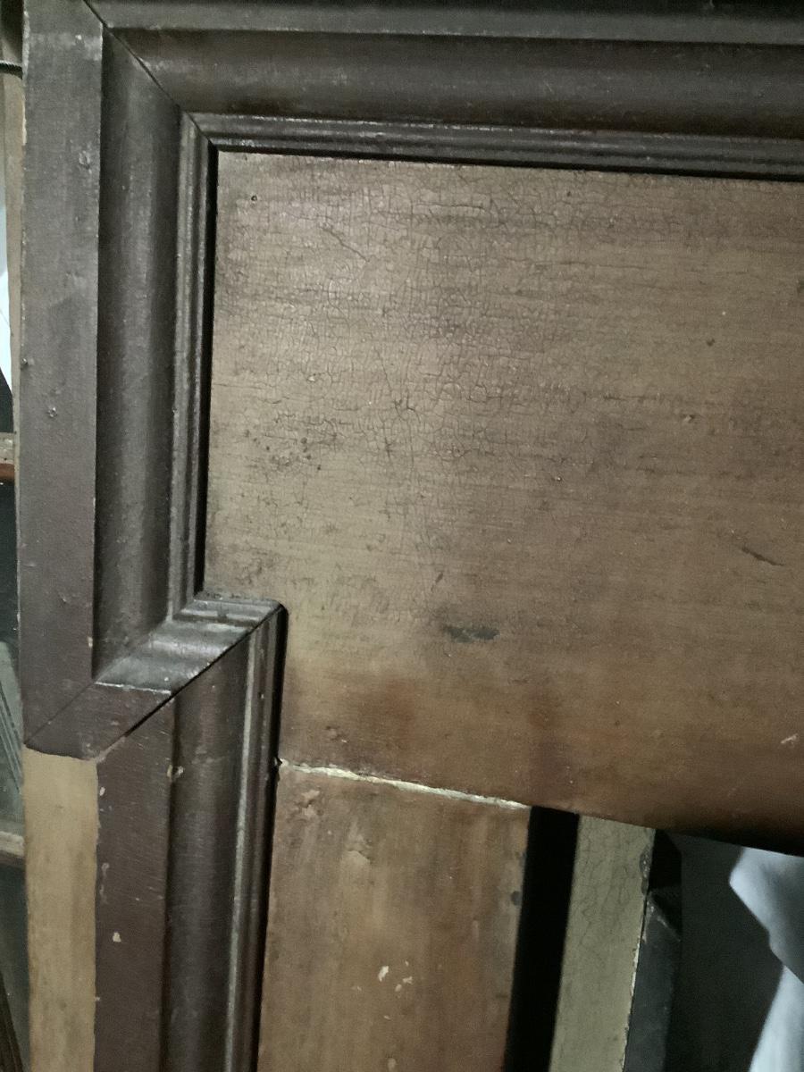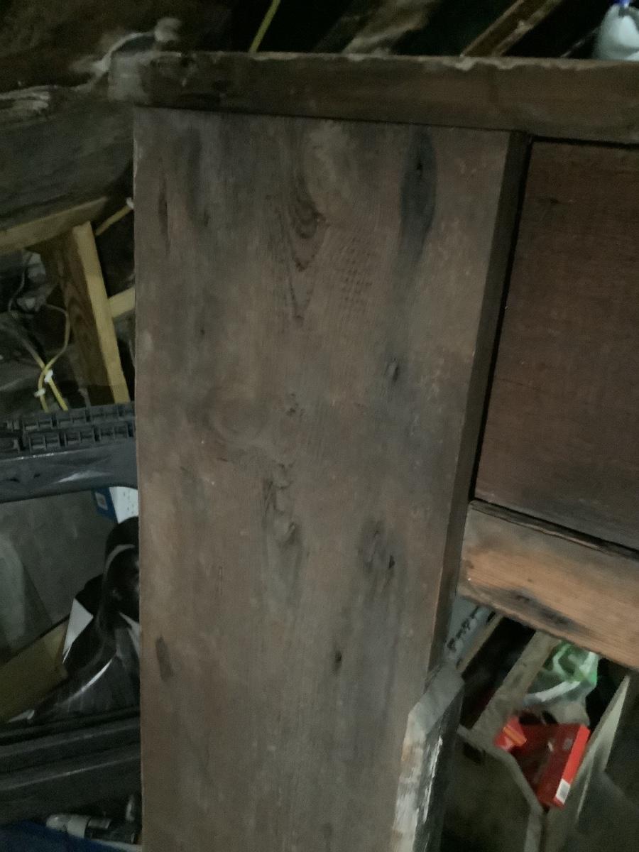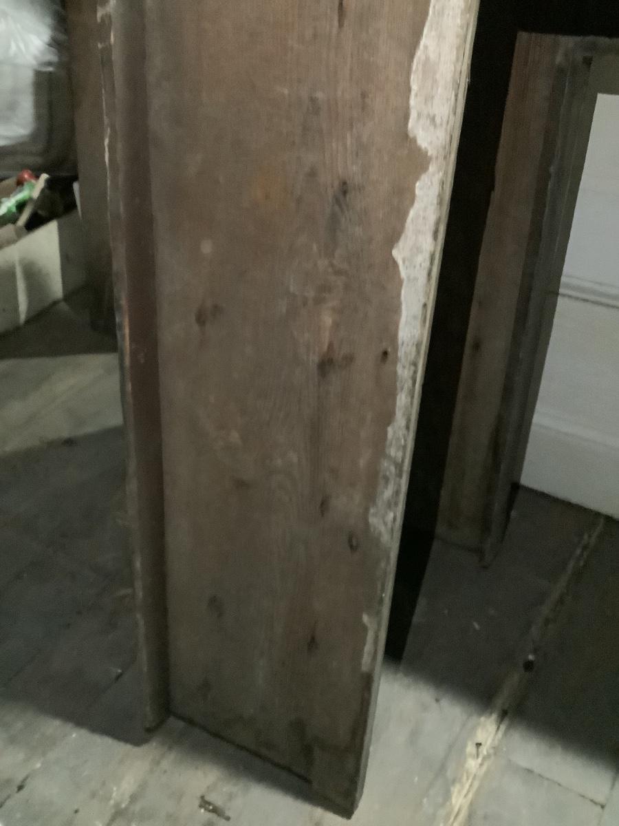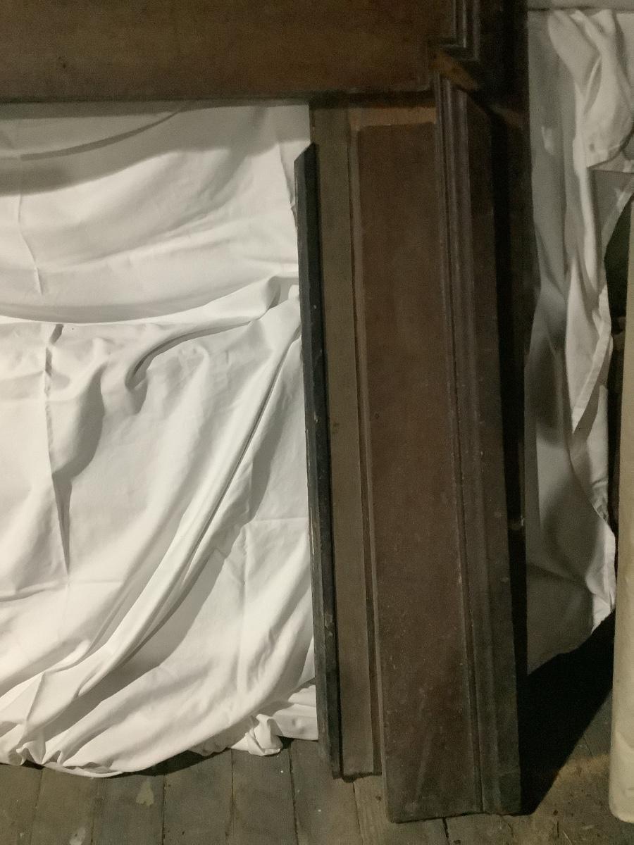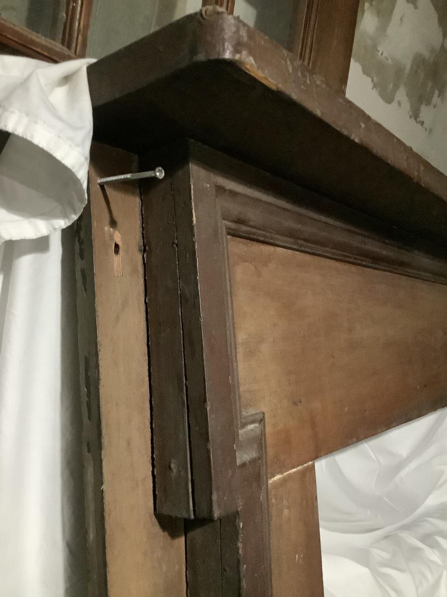 Mantel surround with 2 tones of brown -right side is pulled up but easily put back