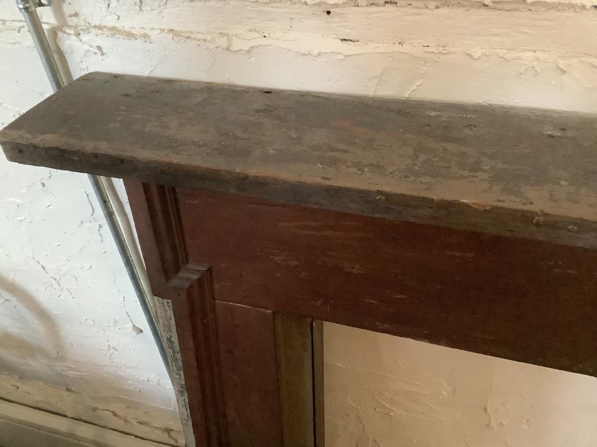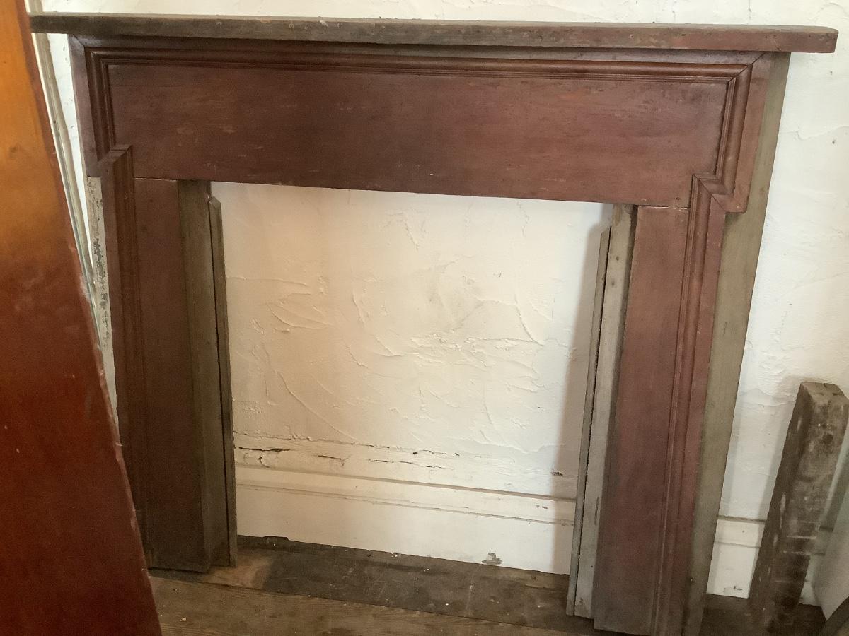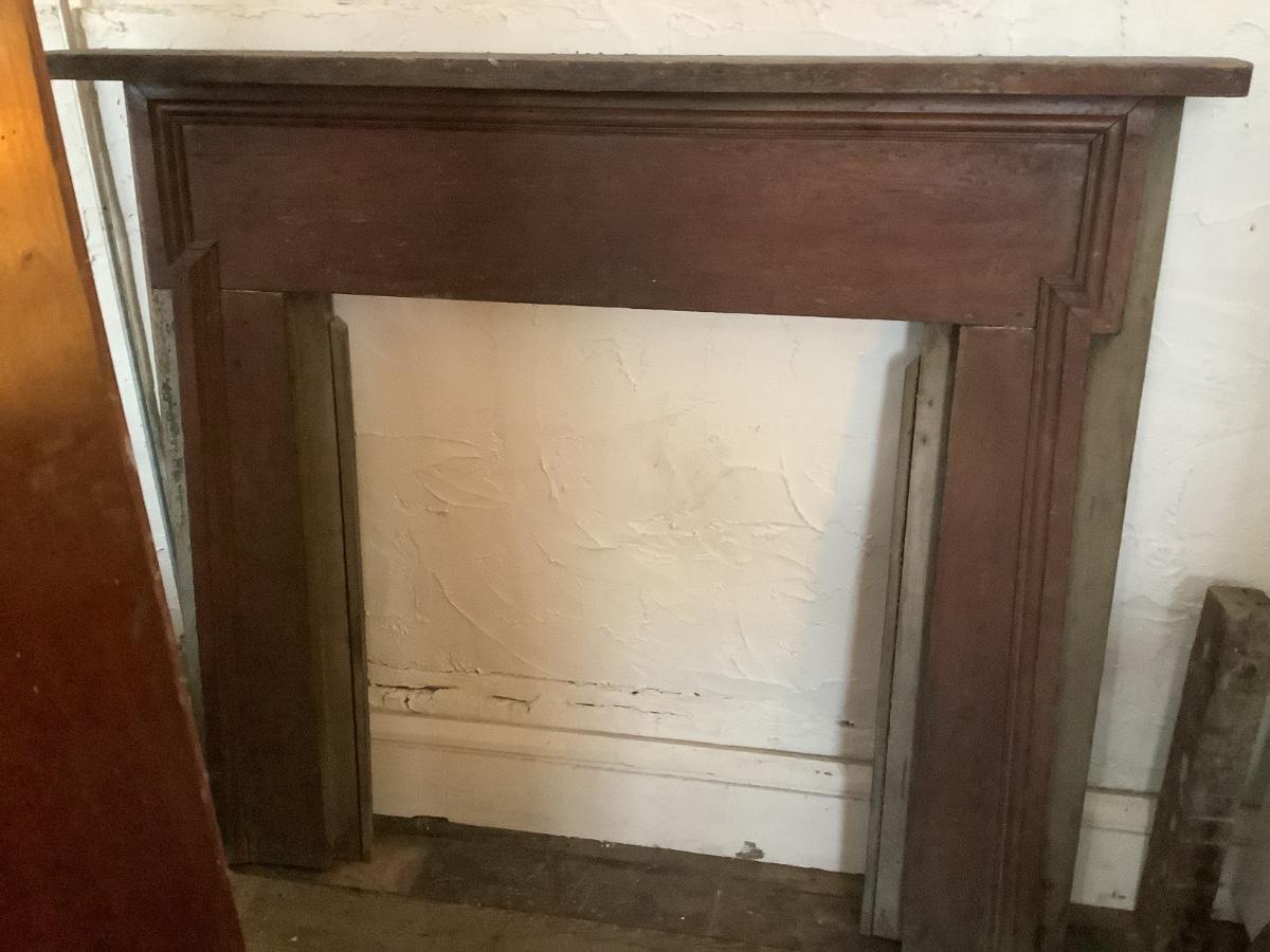 Mantel surround of wood- 53 1/2”H. 60”W. 8”depth. Opening 33”W. 40 1\2” H