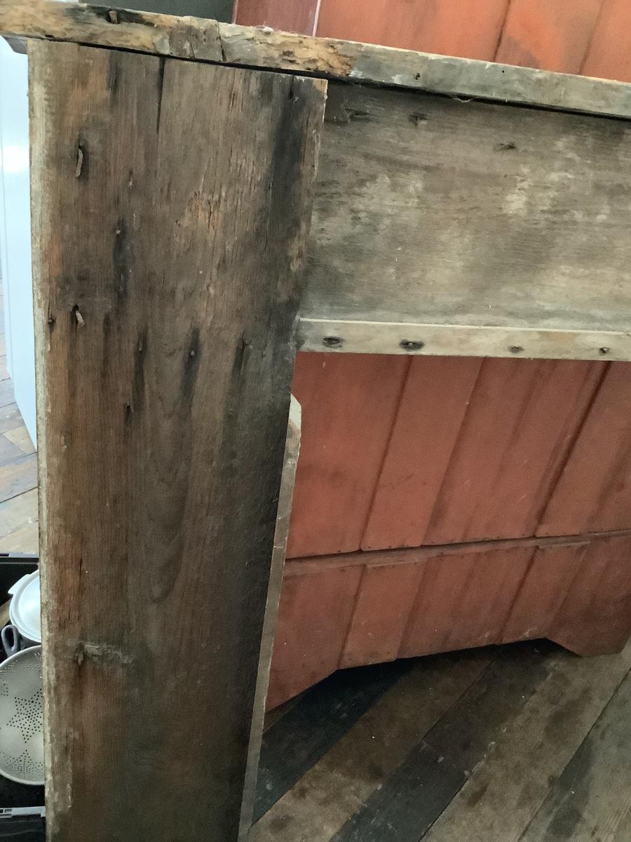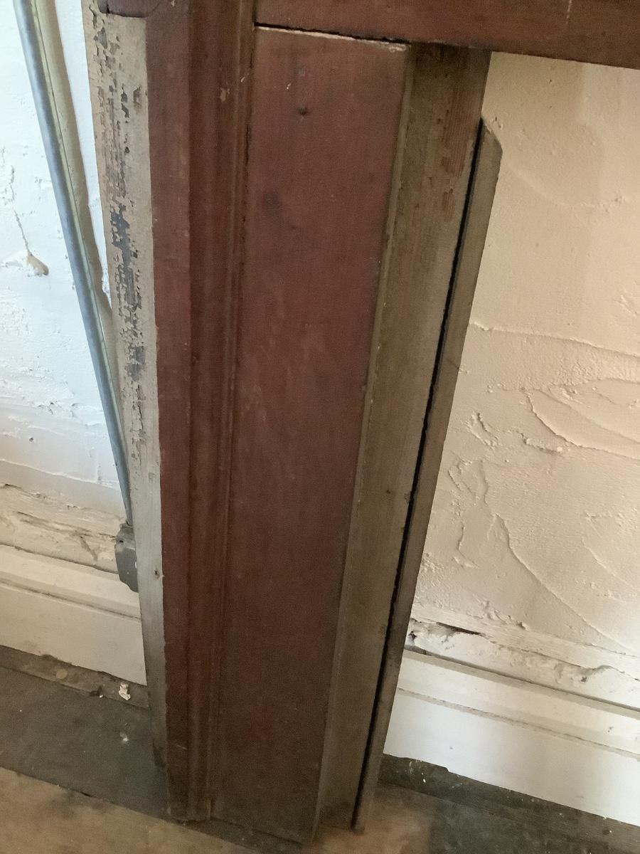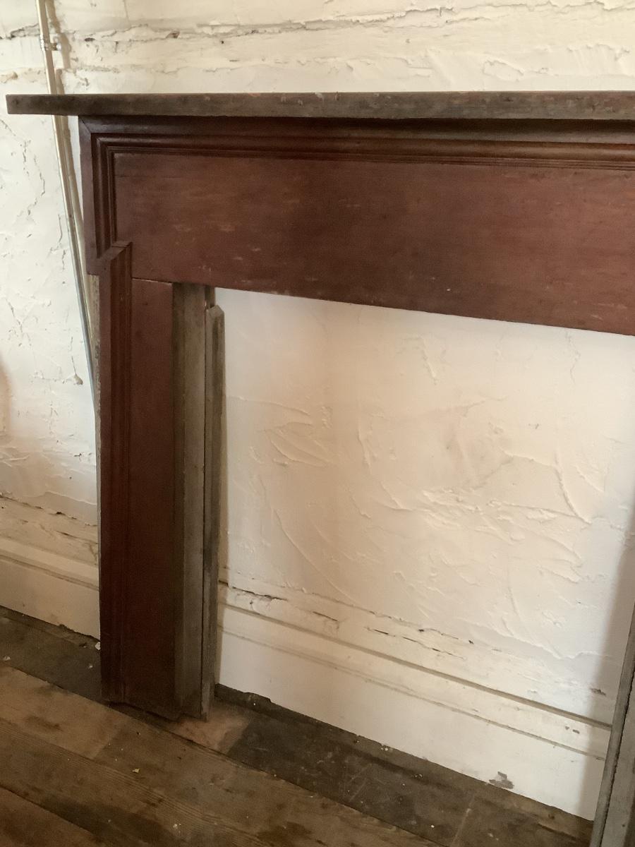 Mantel surround of wood- 53 1/2”H. 60”W. 8”depth. Opening 33”W. 40 1\2” H