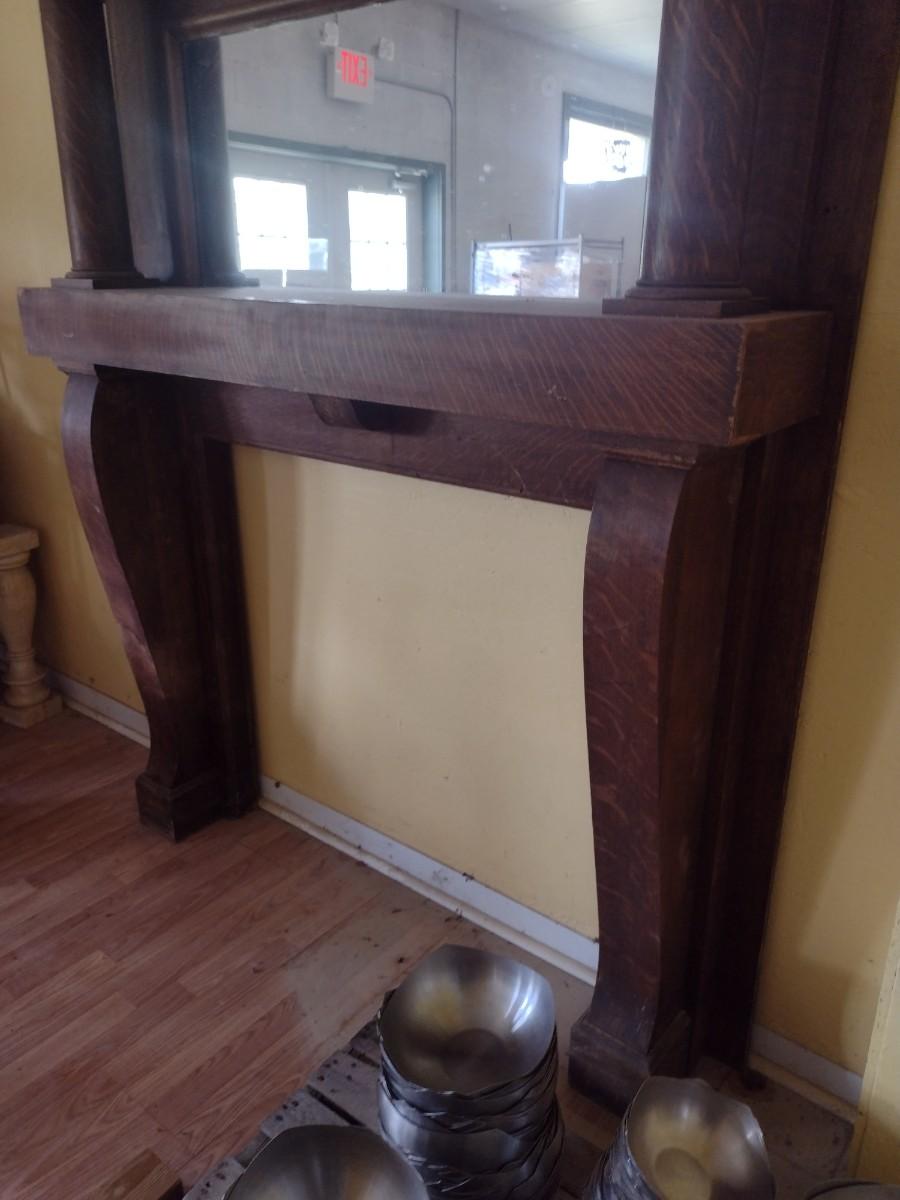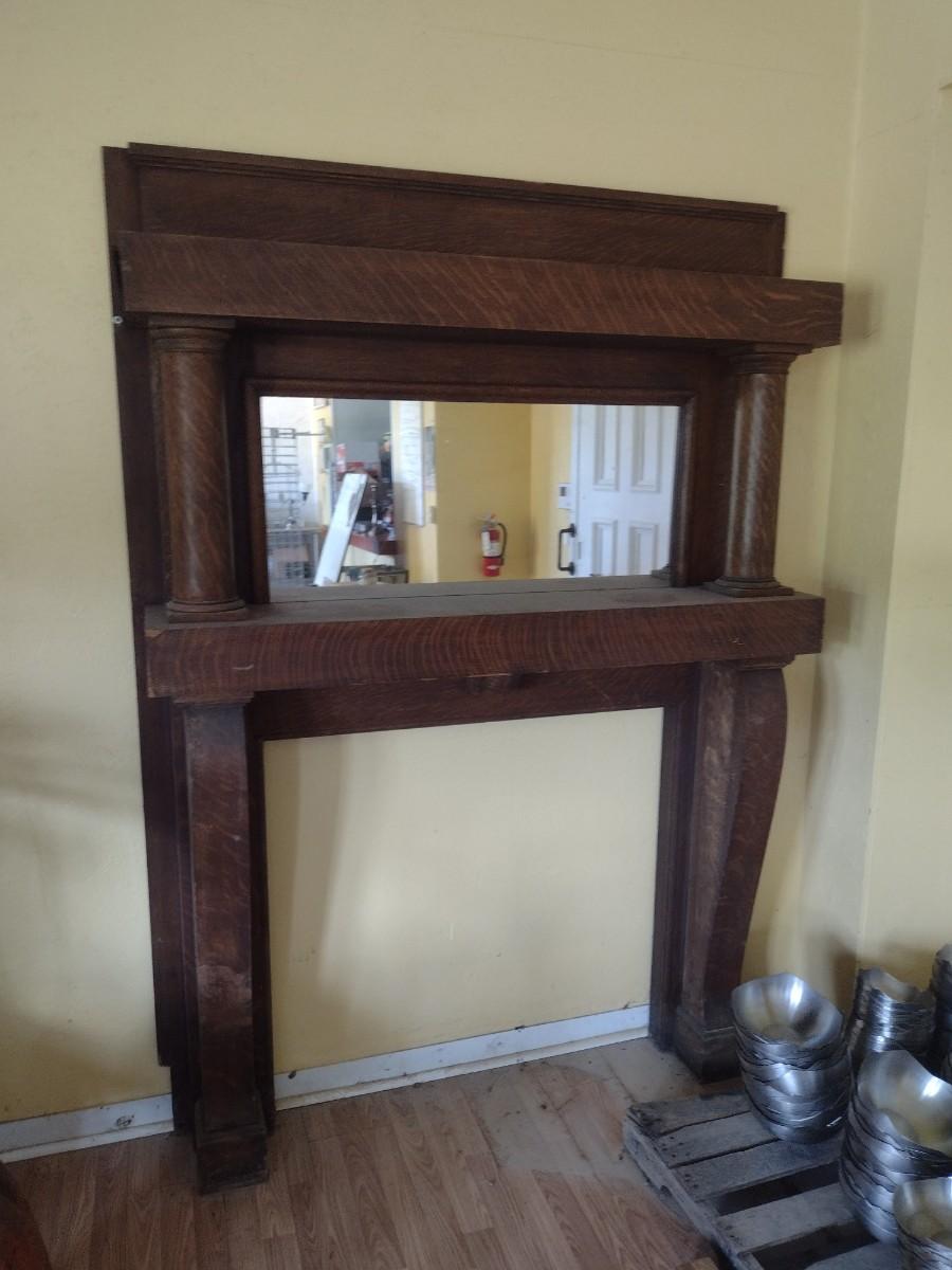 Vintage Oak Veneer Double Shelf Fireplace Mantle