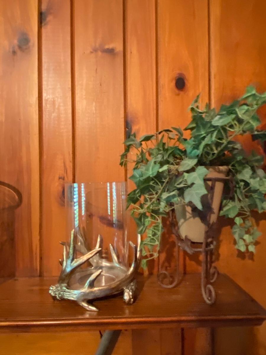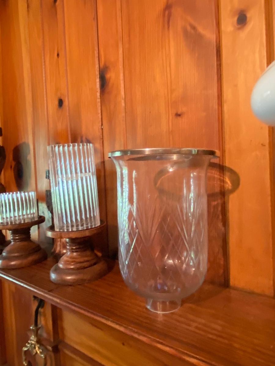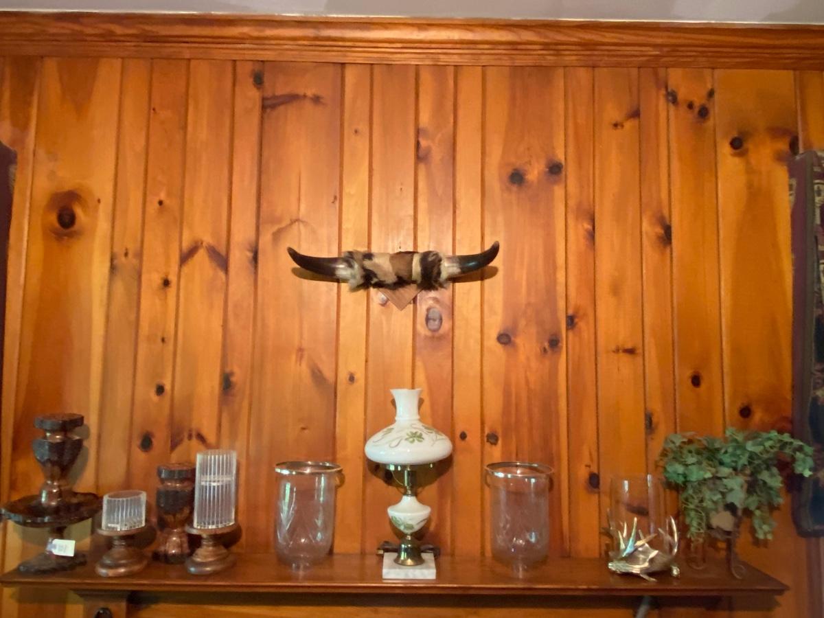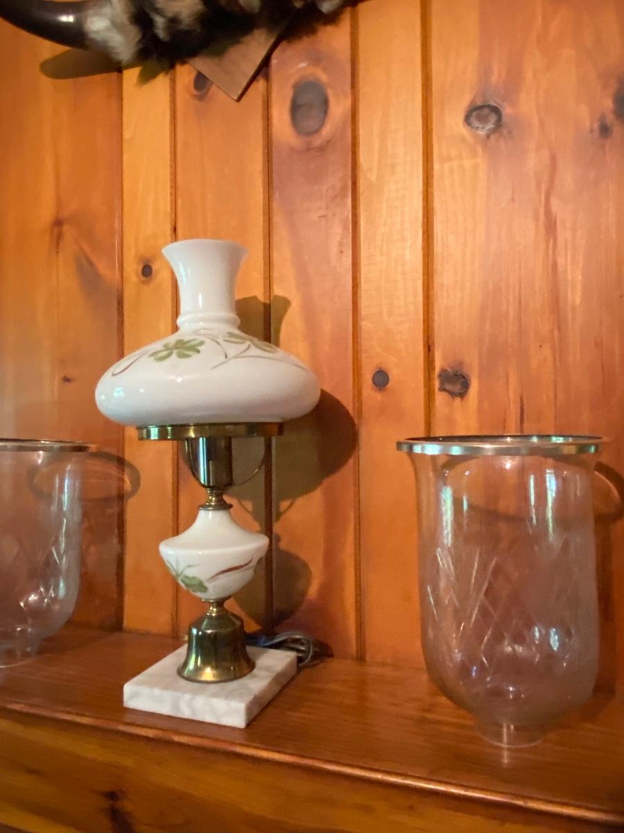 Contents of Mantle As Pictured, Lamp has Crack in Shade