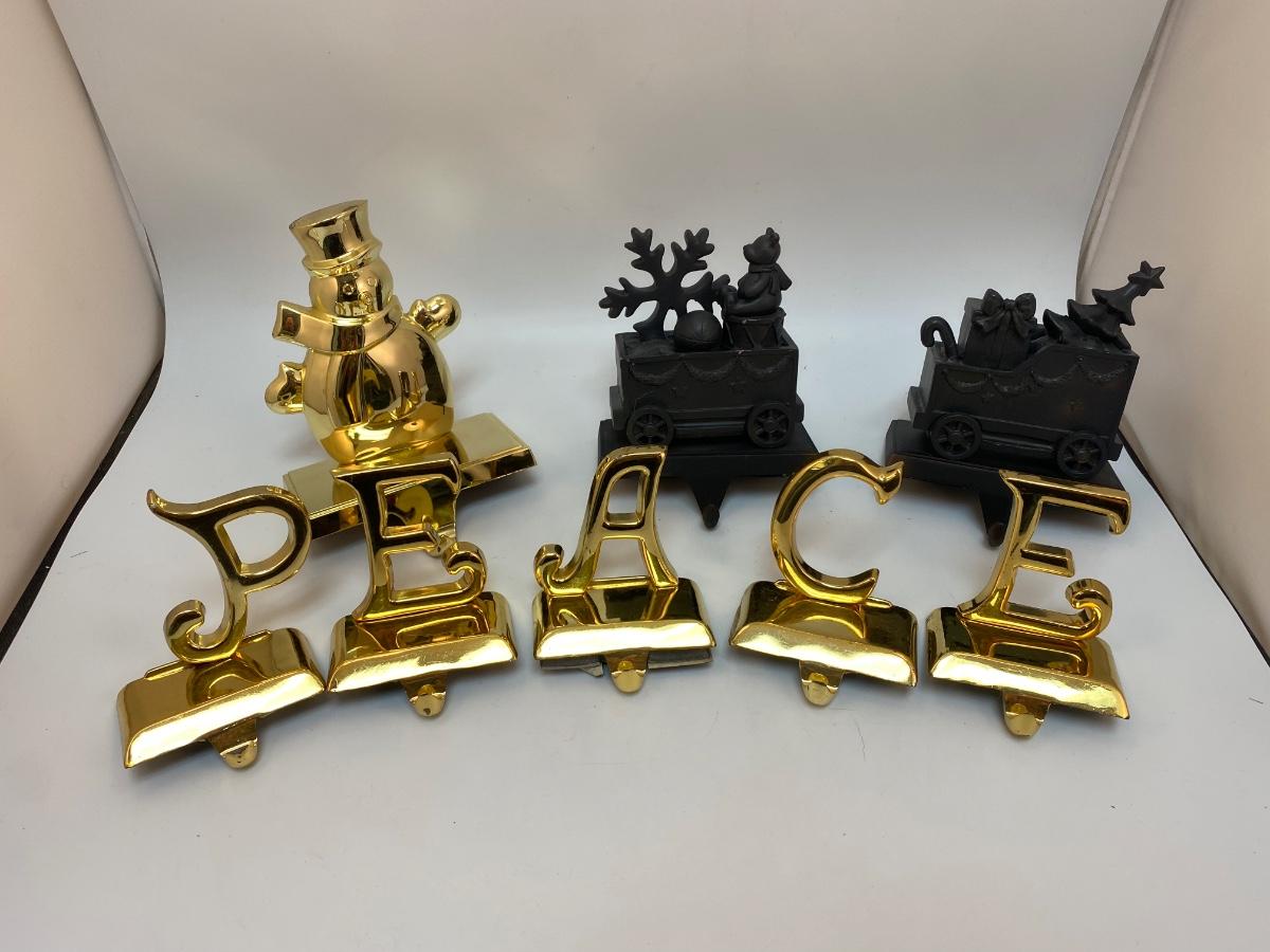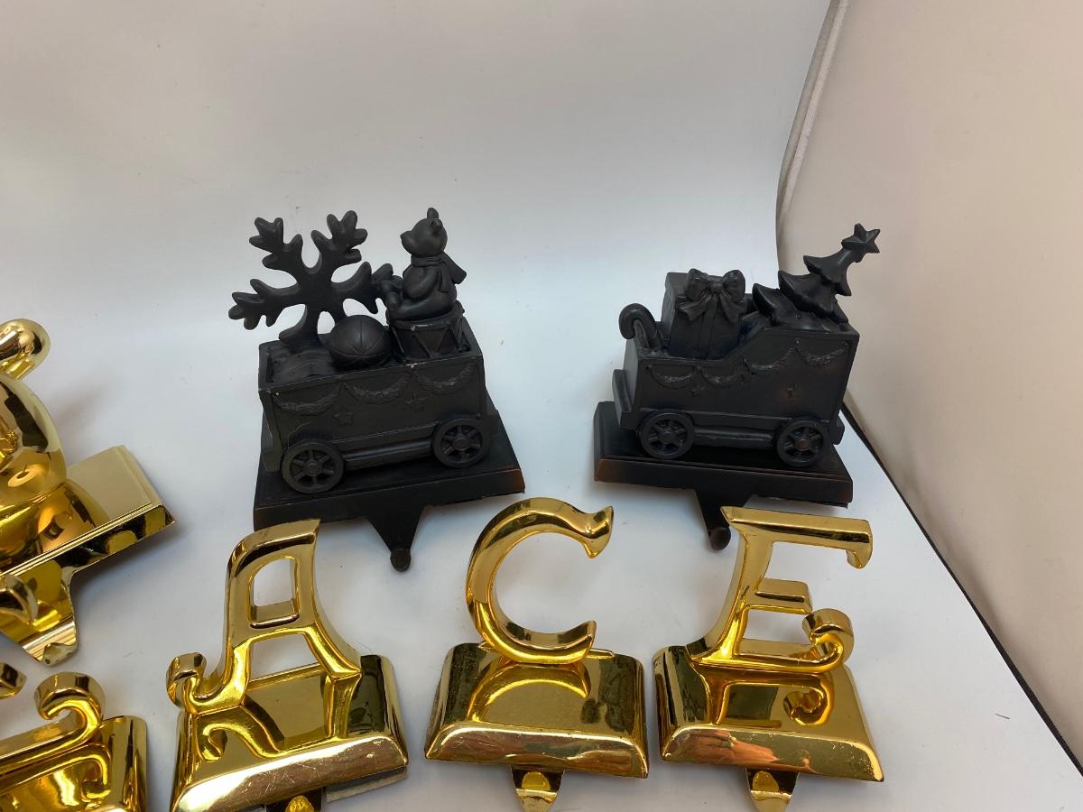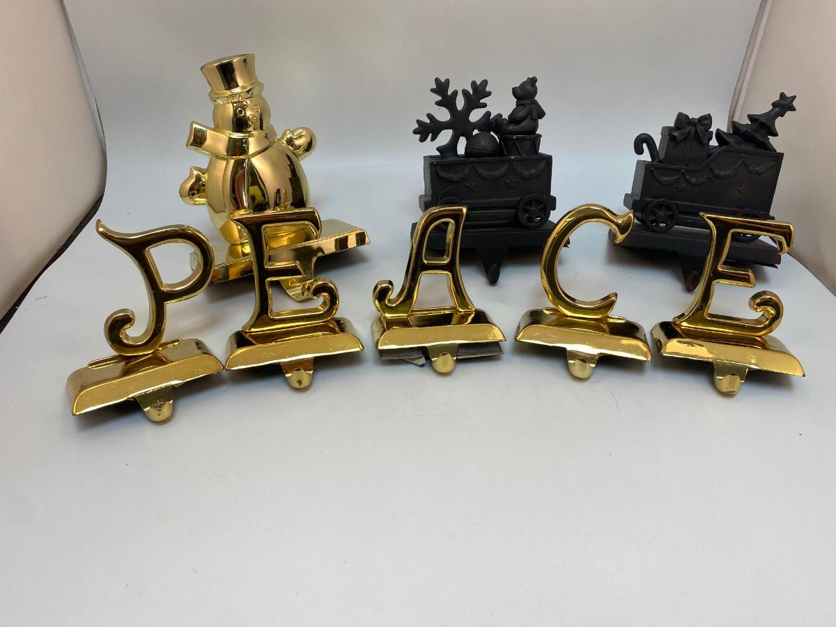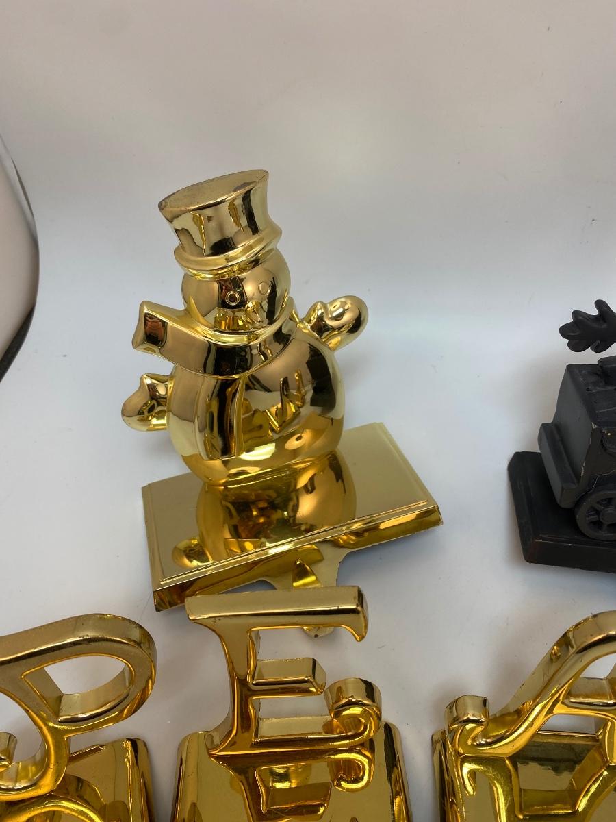 Mantle Shelf Sitting Christmas Holiday Stocking Holder Hooks. Good used condition.