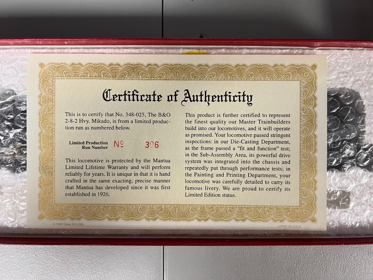 Mantua No. 348-025 B&O Mikado w/ Vandy Tender & Smoke