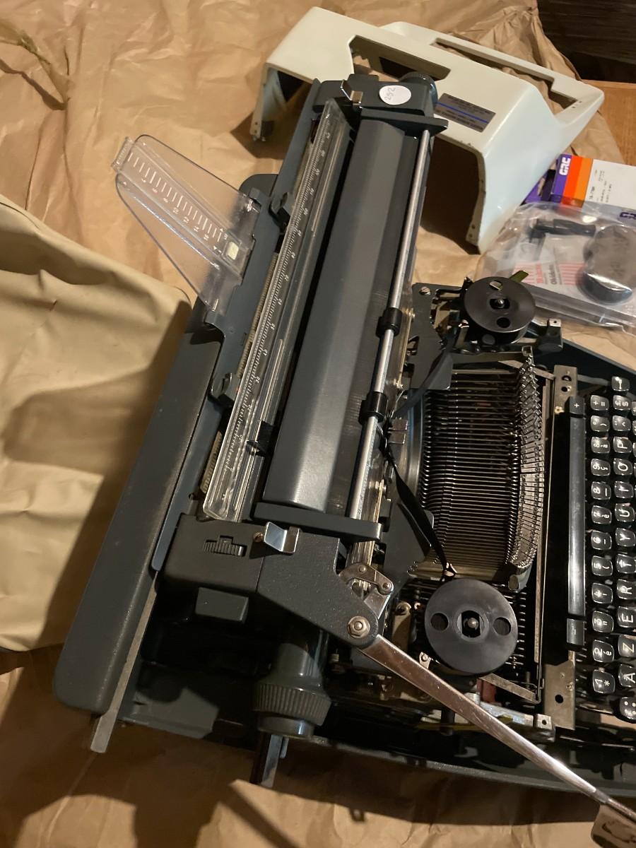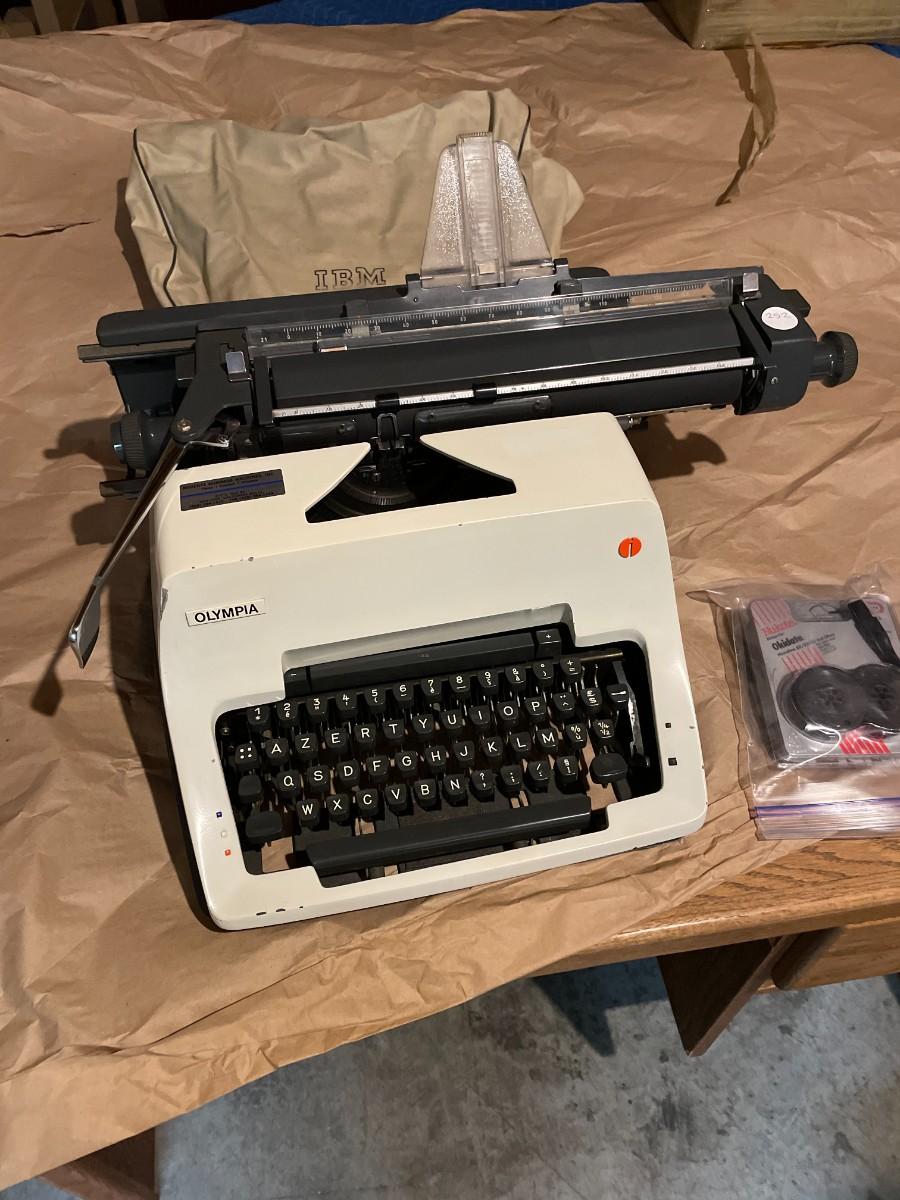Olympia typewriter. This seller was a typerwriter collector! Shown with and without cover