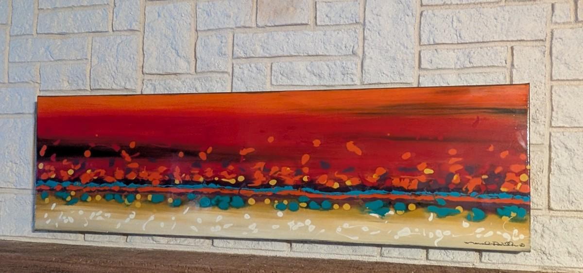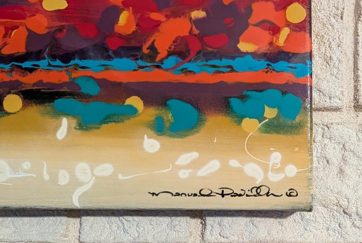 Painting by contemporary artist Manuel Padilla, signed. Acrylic on canvas. 18" x 60"