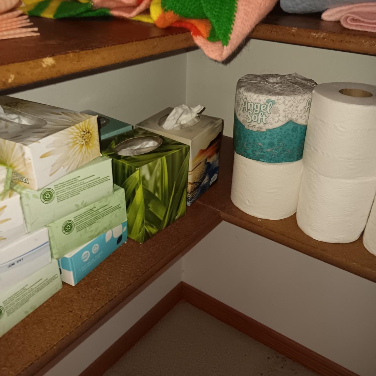 MANY BOXES OF KLEENEX AND SOME ROLLS OF TOILET PAPER PLUS MISC ITEMS