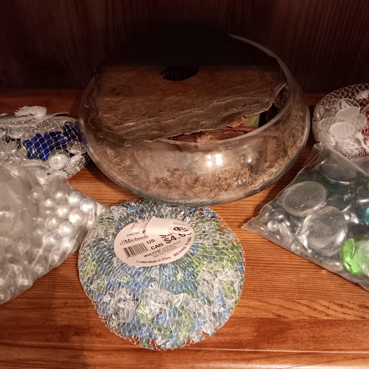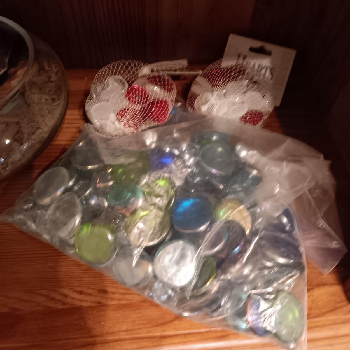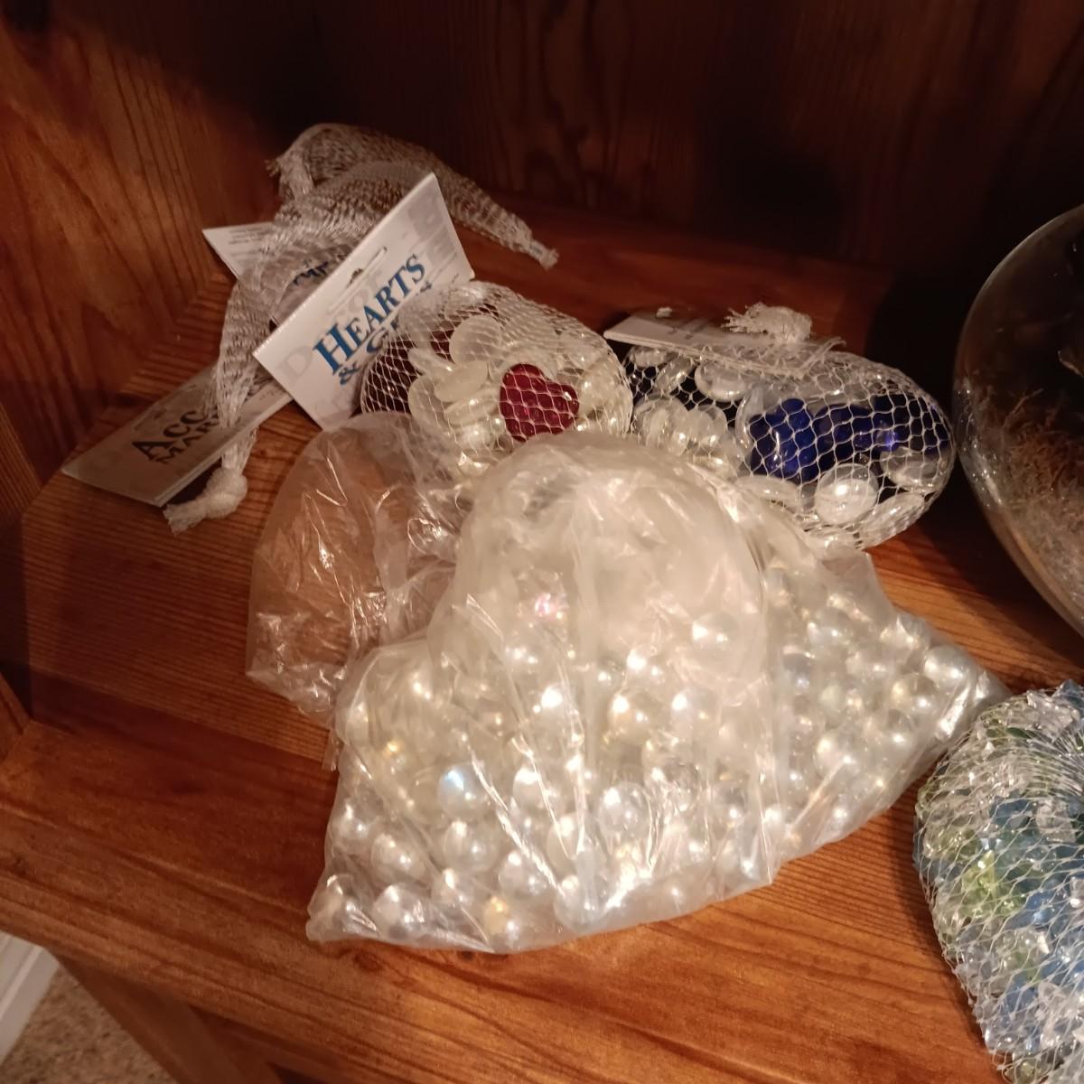 MANY DECORATIVE MARBLES/ROCKS AND VASES/CONTAINERS