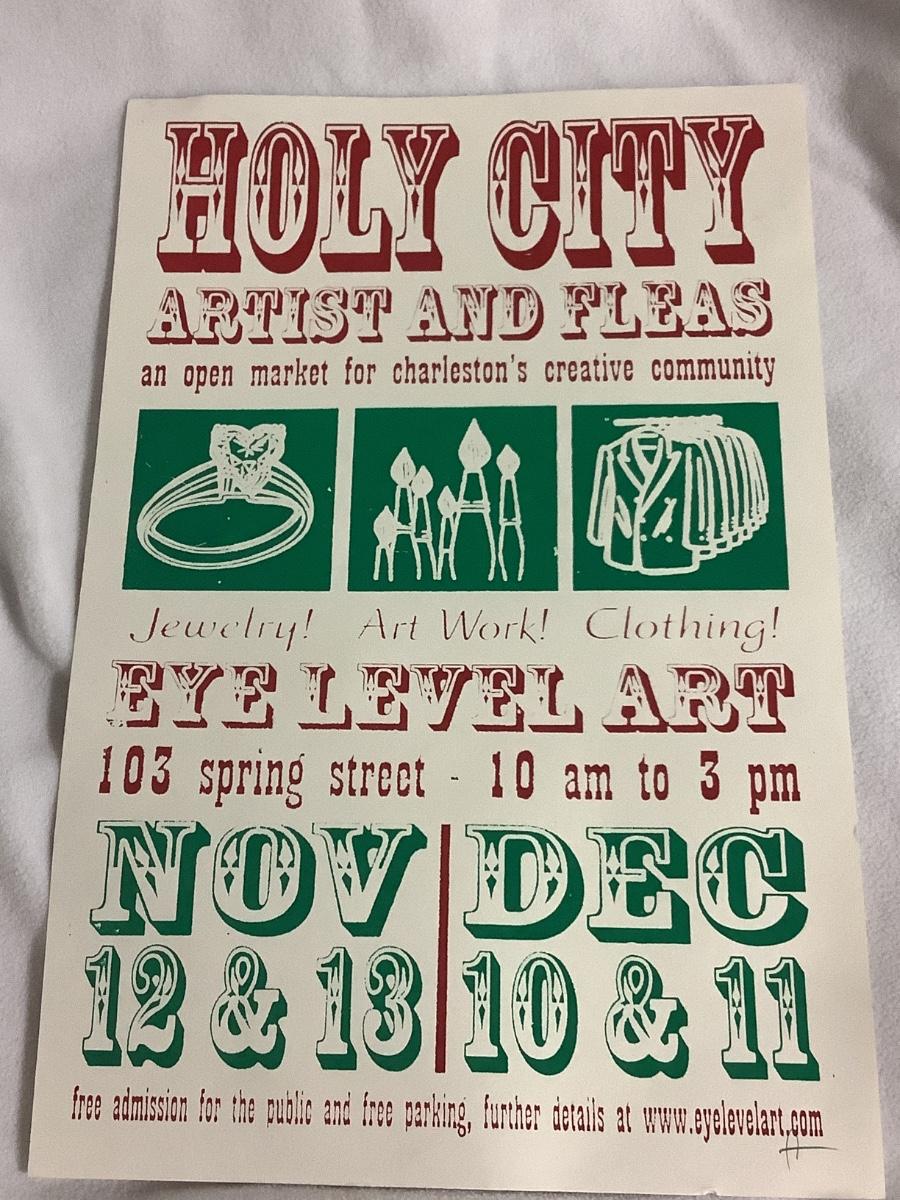 Holy City Artist and Fleas an Open Market for Charleston's Creative Community by Charleston's own Chuck Keppler-Vintage Poster 17"H 11" W
