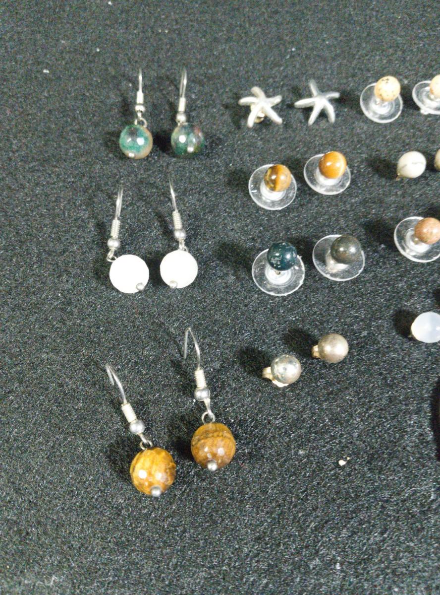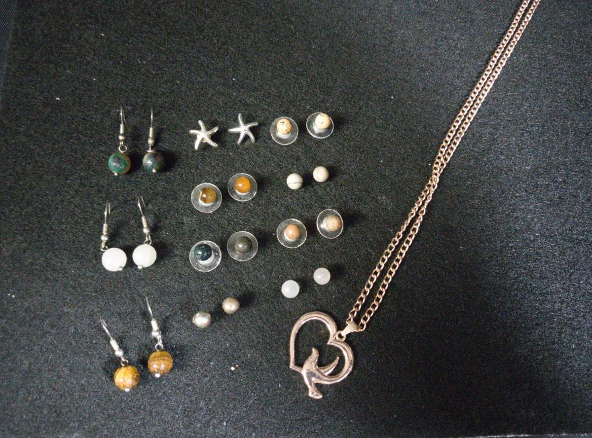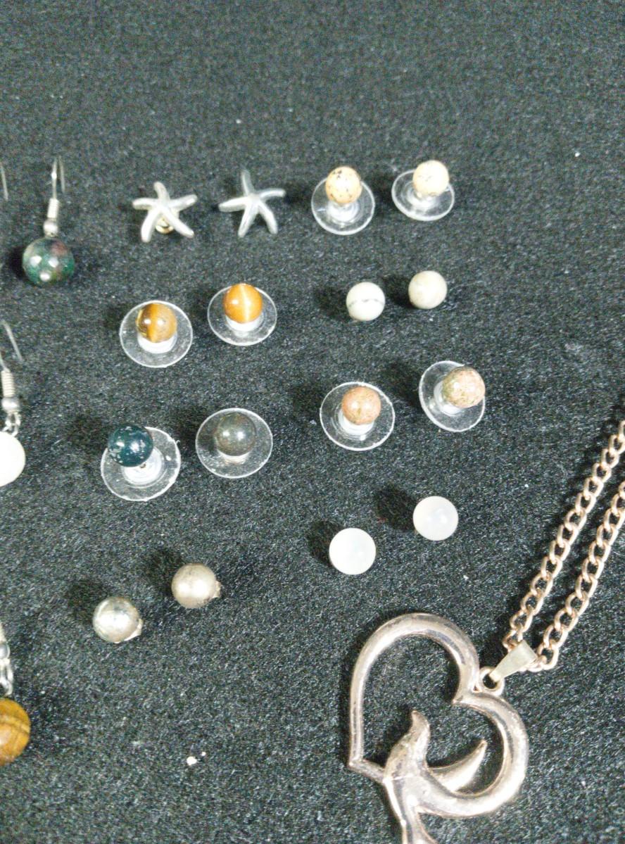 MANY PAIRS OF PIERCED EARRINGS AND A NECKLACE