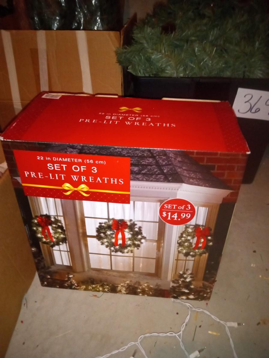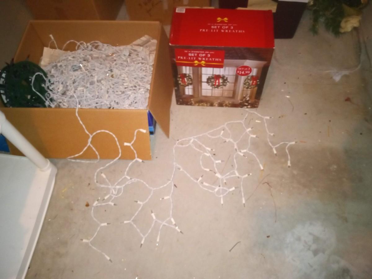 MANY STRANDS OF ICICLE LIGHTS AND PRE-LIT WREATHS