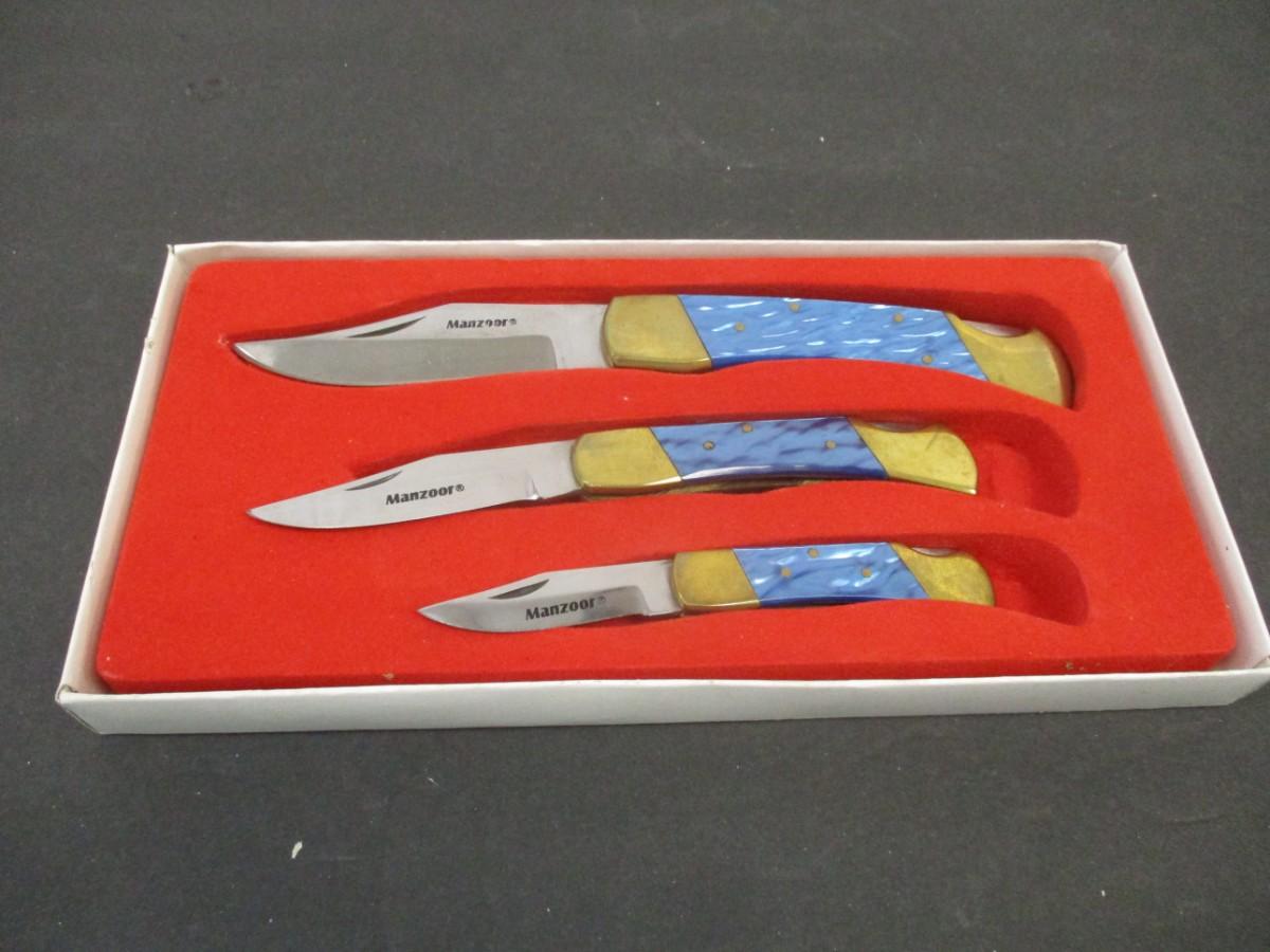 Manzoor 3 Piece Set Size 3" - 4" - 5" Stainless Steel Blade Pearl Plastic Handle