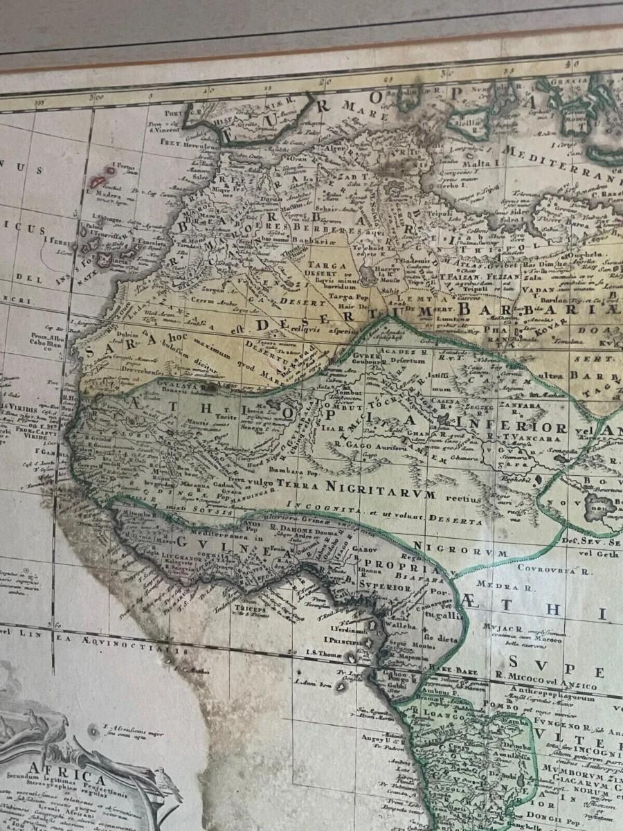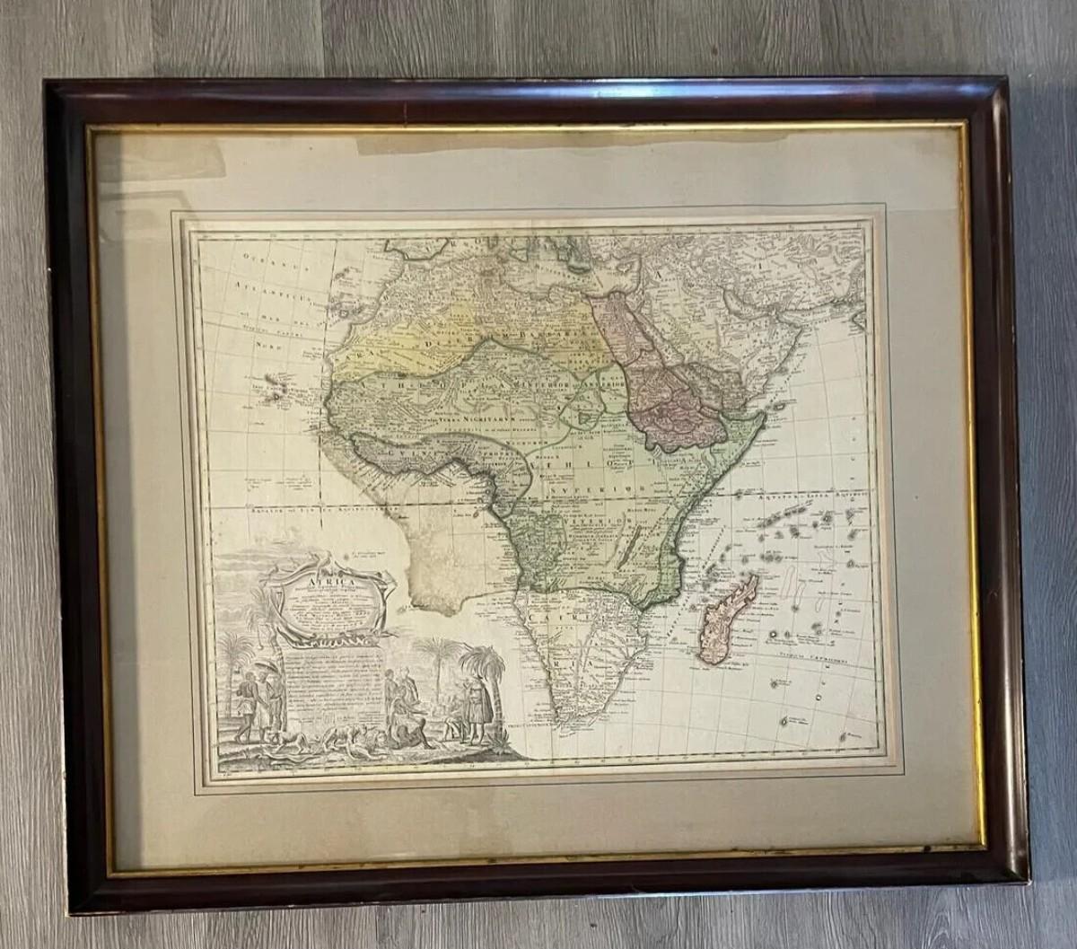 Description: Framed Antique 1737 - J.B HOMANN- AFRICA SECUNDUM LEGITIMAS. Johann Baptist Homann (20 March 1664 -1 July 1724) was a German geographer and cartographer, who also made maps of the Americas; Measurement approximate: ; Material: Paper; Condition: Good