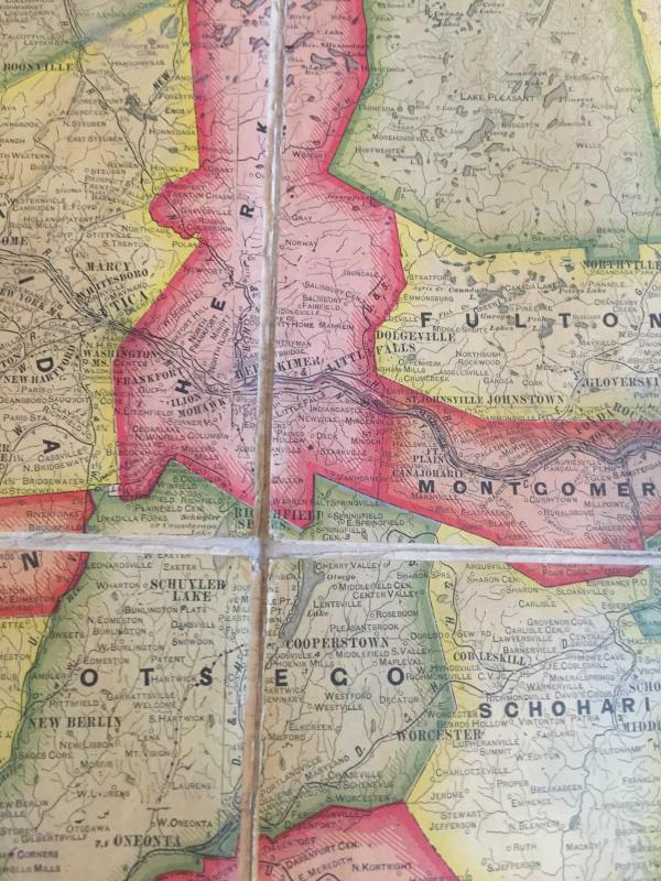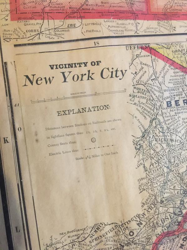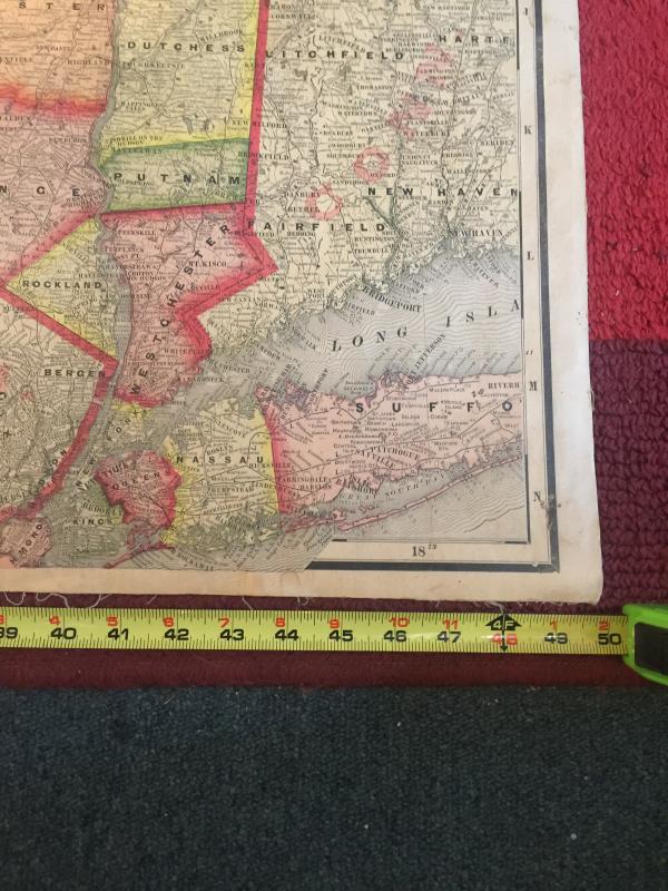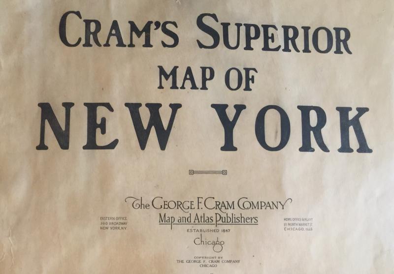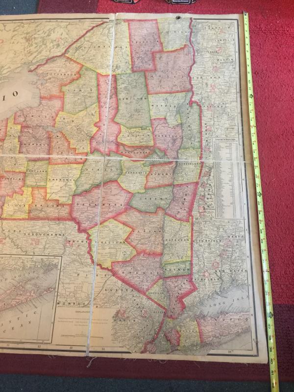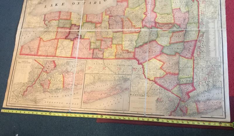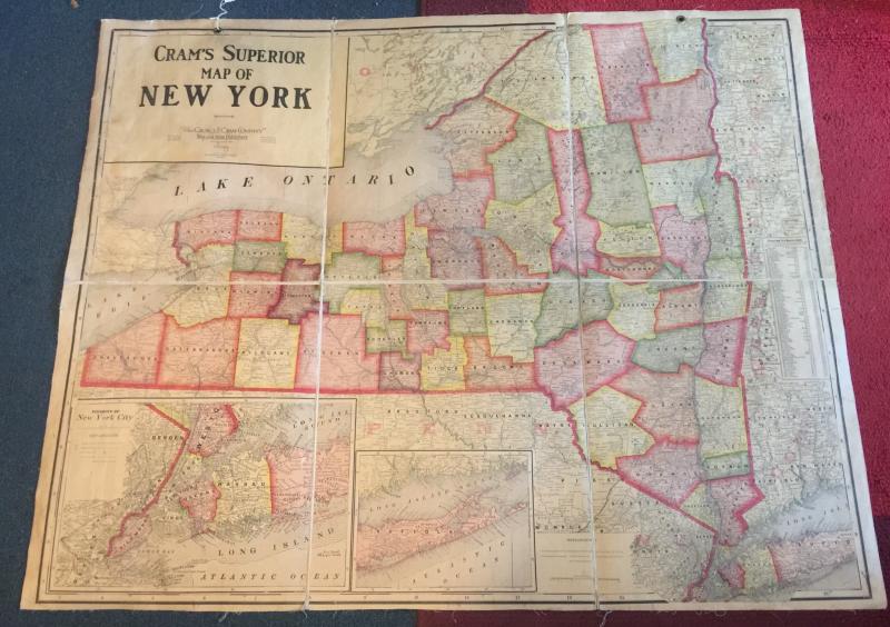 Map of New York - Giant cloth backed antique map - The only date shown on this map is the company’s founding date of 1867. I believe this map to most likely date somewhere between the 1920s and 1930s it is larger than 3ftx4ft. See Photos for exact measurements, there is wear to this map please see the pics there is also a moisture mark on the back cloth