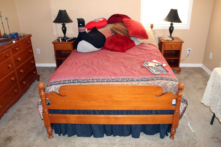 Maple bedroom set, double bed, dresser, 2 nightstands (#109)
