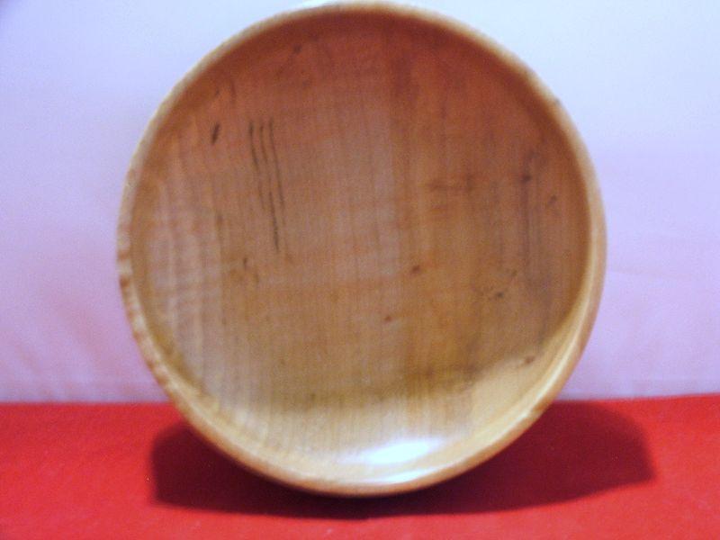 Pretty 6" maple bowl. Some marks on the inside from items being stored in it. Interesting grain in the wood.