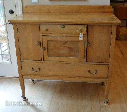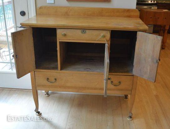 Beautiful maple buffet has several interior compartments and has metal casters on the legs. 44"L x 20"W x 43"H